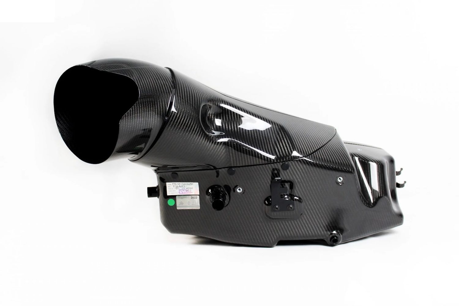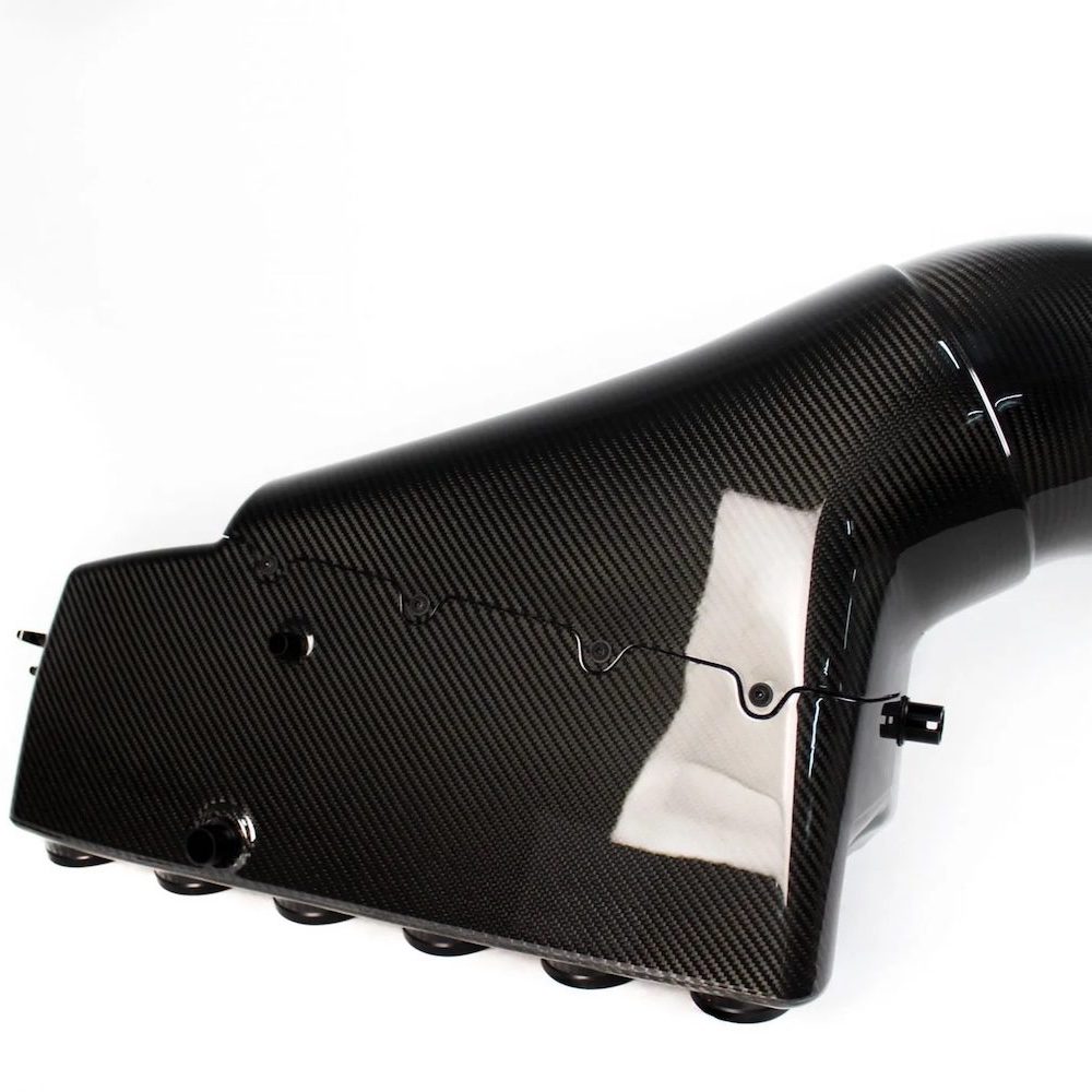 Karbonius Composites M3 CSL Carbon Race Airbox integrates a dedicated snorkel to channel cool, front-fed air, lowering intake temperatures and optimizing airflow. The result is measurable power gain, sharper throttle response, and a distinctive induction note paired with a high-gloss, UV-protected finish for a striking under-hood presence. Built in the EU from 100% pre-preg carbon fiber and autoclave-cured, each unit is hand-laid by qualified technicians under rigorous quality control. Confident in its craftsmanship, Karbonius backs the airbox with a 2-year warranty against manufacturing defects.