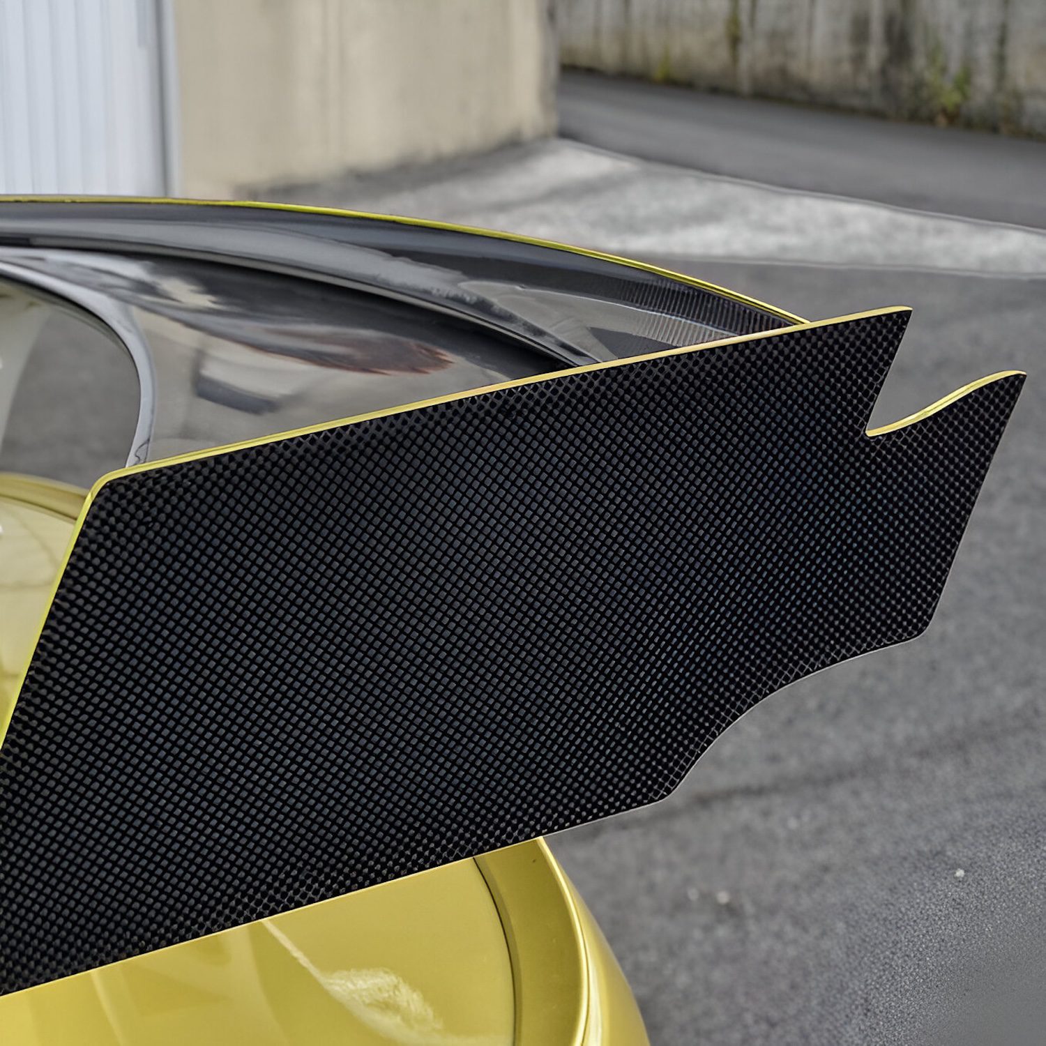Karbonius Composites Stage 1 rear wing for the F8X M3 / M4 weighs just 3 kg and is manufactured entirely from prepreg carbon fiber, autoclave-cured in Spain by qualified staff under an ISO 9001 quality management system. Engineered to deliver both form and function while preserving the brand’s hallmark elegance, it offers an adjustable, F8X specific aero solution that is highly effective on track and adds purposeful aggression on the street. The kit features anodized aluminum uprights paired with a full carbon wing element and endplates. A straightforward adjustment mechanism clearly marks optimal positions for maximum downforce and efficiency. Developed using advanced 3D and 2D analysis of both the wing and vehicle, the design ensures superior strength and finish consistent with Karbonius standards. Each wing is individually numbered to verify origin and authenticity.