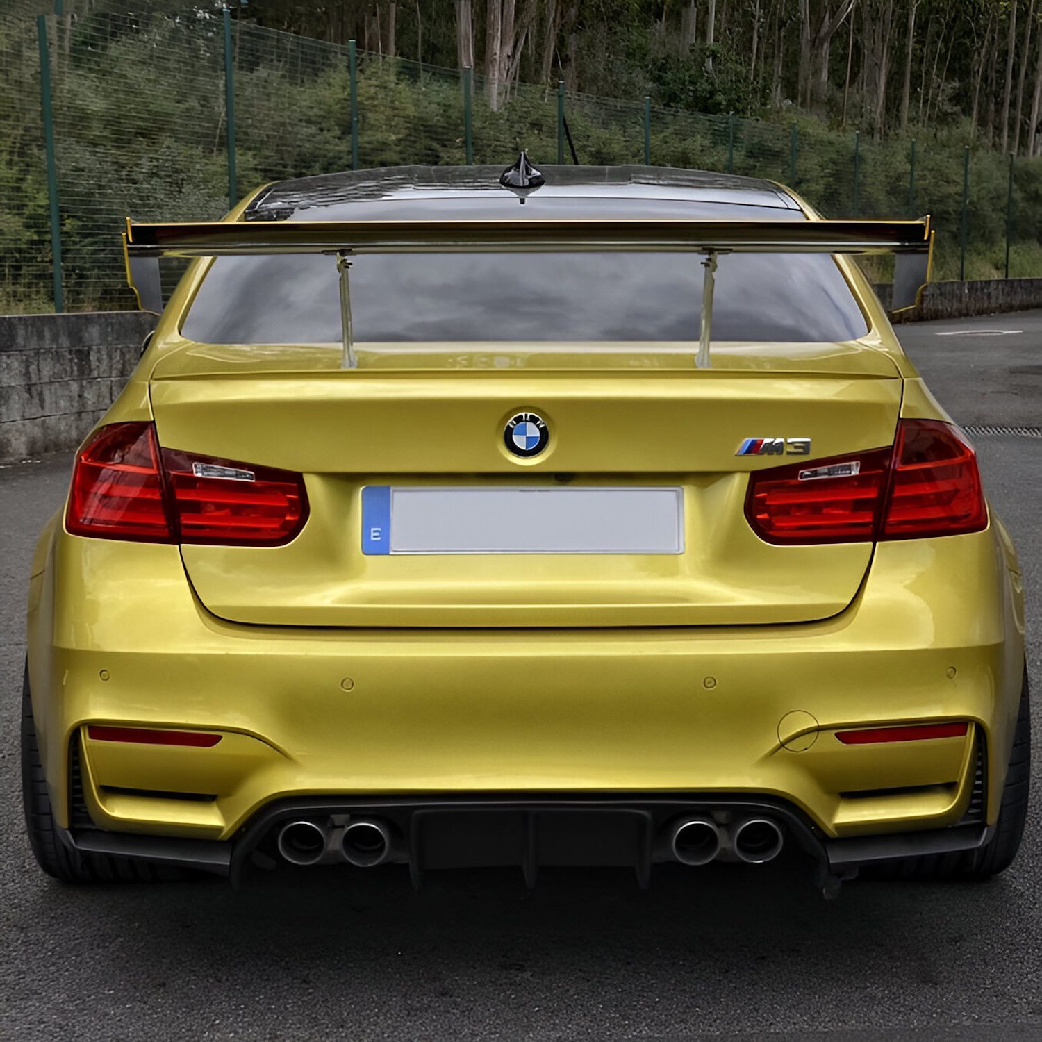 Karbonius Composites 3 kg autoclave-cured pre-preg carbon Stage 1 rear wing for F8X M3 / M4, adjustable, track-proven aero with anodized aluminum uprights; elegant street look, ISO 9001-built, individually numbered for authenticity.