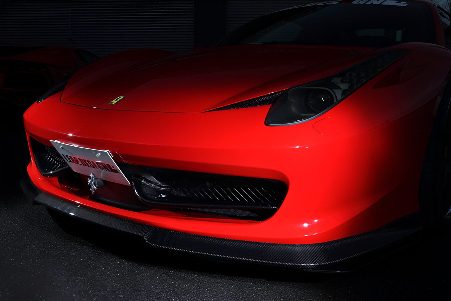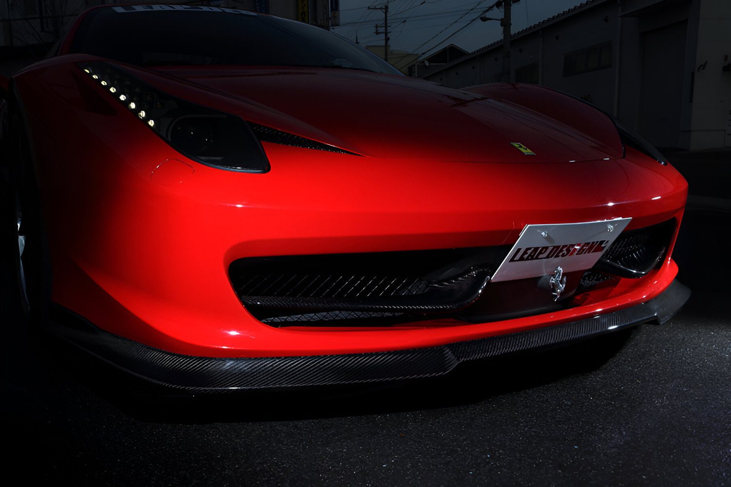 LEAP DESIGN Co., Ltd. elevates the Ferrari 458 Italia’s front-end aesthetics and aerodynamic performance with its Carbon Front Duct Wing. Expertly crafted from high-quality carbon fiber, this front duct wing is designed to channel air more efficiently through the front end, enhancing cooling and downforce for superior handling and performance. The lightweight and durable construction ensures it adds minimal weight while offering maximum strength. Its design flawlessly integrates with the Ferrari 458 Italia’s sleek lines, adding a touch of aggressive elegance and improving the overall aerodynamic profile.