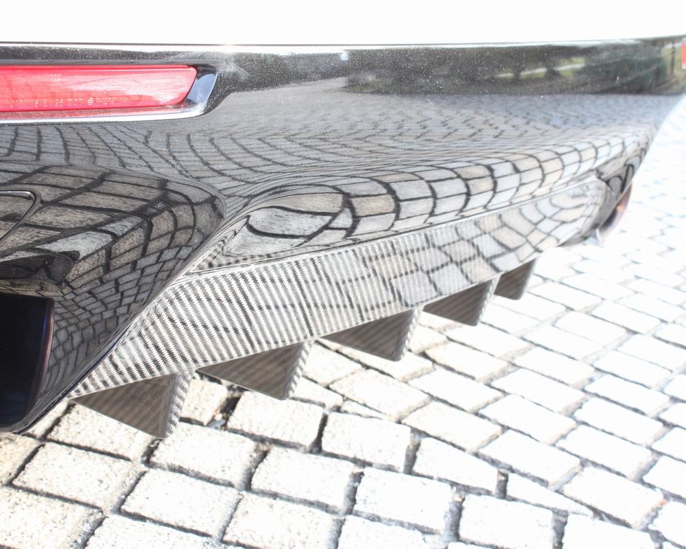Designed and manufactured by LEMS, this rear under diffuser is composed of dry carbon, and is available with a clear coat. Currently available for purchase. This product gives the vehicle an aggressive, track-ready appearance to the back of the car. Diffusers are designed to direct airflow through the bottom of the car, enhancing the vehicle’s handling performance at high speeds.