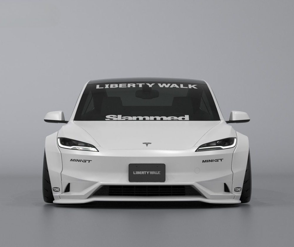 The Liberty Walk LB-E-WORKS Front Half-Spoiler for the 2024+ Tesla Model 3 is a striking upgrade designed to enhance the front-end appearance and aerodynamic performance of the refreshed Model 3. Crafted with precision, this half-spoiler features a bold, aggressive design that seamlessly integrates with the updated contours of the 2024 Model 3, giving it a more commanding and race-inspired presence on the road. Made from premium FRP, the LB-E-WORKS Front Half-Spoiler not only adds a distinctive visual edge but also improves downforce and stability at higher speeds. Perfect for Tesla enthusiasts looking to elevate their vehicle’s style while maintaining functionality, this front half-spoiler is an ideal choice for a sleek, performance-oriented modification.
