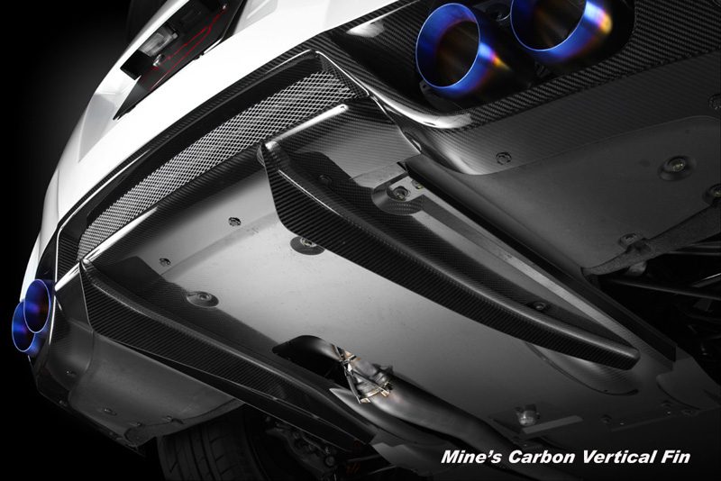 An optional parts for the Mine’s Carbon Underspoiler. The Fin streamlines the undercarriage airflow for a better vehicle stability.