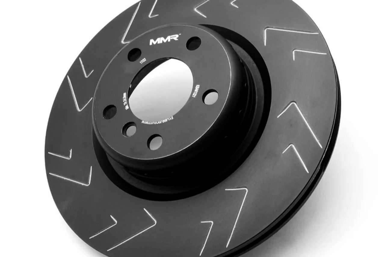MMX Performance’s 2-Piece Rear Brake Rotors for F2x and F3x BMW 1, 2, 3, and 4 Series models offer a direct-fit upgrade for vehicles equipped with M Sport brakes (blue calipers). Precision-engineered to replace the factory 345mm x 24mm rear discs, these rotors feature MMX’s signature directional groove pattern for improved initial bite, efficient debris evacuation, and reduced vibration under high thermal loads. The two-piece design pairs a lightweight aluminum center hat with a high-carbon cast rotor face, secured via a pin-drive system, enhancing both cooling efficiency and unsprung weight reduction. The directional groove layout also reduces noise and avoids cracking common in drilled alternatives. Finished in a black zinc anti-corrosion coating and R90-certified for road use, these rotors are equally suited to fast road and track environments. Matching front rotors are available to complete the full brake system upgrade.