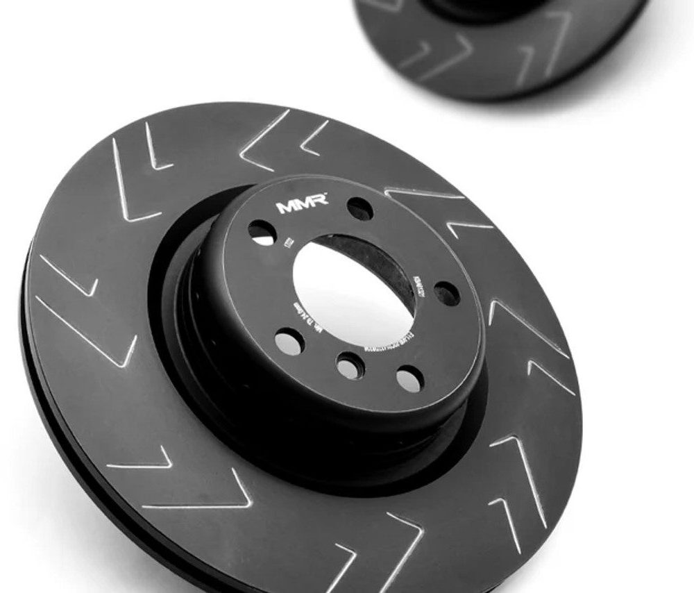 MMX Performance’s 2-piece rear brake rotors for F2x / F3x BMWs with M Sport brakes are direct-fit 345mm x 24mm replacements featuring directional grooves for improved bite, reduced heat distortion, and quieter operation. With a high-carbon cast rotor face, lightweight aluminum hat, and R90 road approval, they deliver track-ready performance and durability for fast-road applications. Matching front rotors are also available.