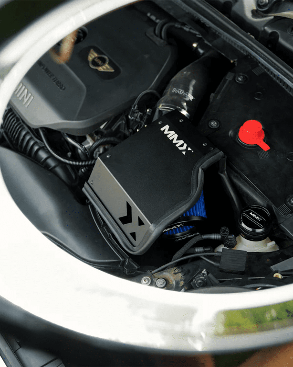 MMX Performance offers a precision-engineered induction kit for the MINI Cooper, Cooper S, and Cooper JCW models. Developed to enhance power, throttle response, and induction sound while improving engine bay efficiency. Designed for a true bolt-on installation, the system mounts directly to factory locations using OEM rubber fittings — eliminating the need for cutting or complex modifications. The intake is fully MAF sensor compatible across all supported variants, ensuring seamless integration. A key feature of the system is the custom heat shield, which isolates the high-flow cone filter from engine bay heat and works in conjunction with the factory cold air ducting to reduce intake temperatures. Whether on a stock or tuned setup, the result is noticeably sharper turbo spool, improved throttle response, and a more aggressive intake note that enhances the driving experience.