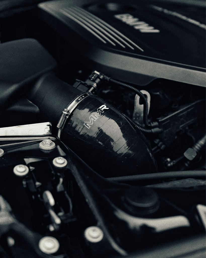 MMX Performance’s silicone intake hose for B58-powered Fxx BMW models improves airflow to the turbo, sharpens throttle response, and enhances induction sound — especially when paired with an aftermarket intake.