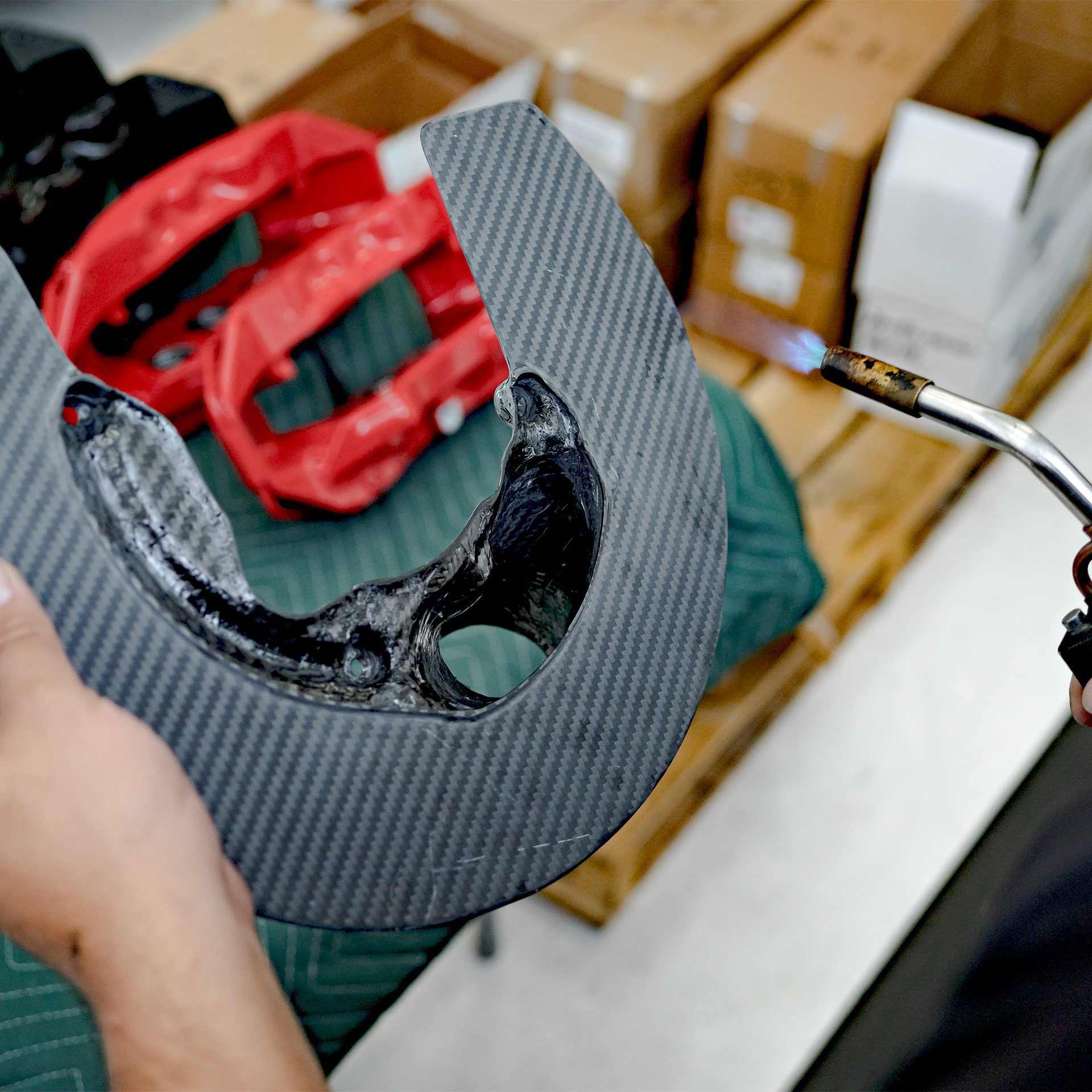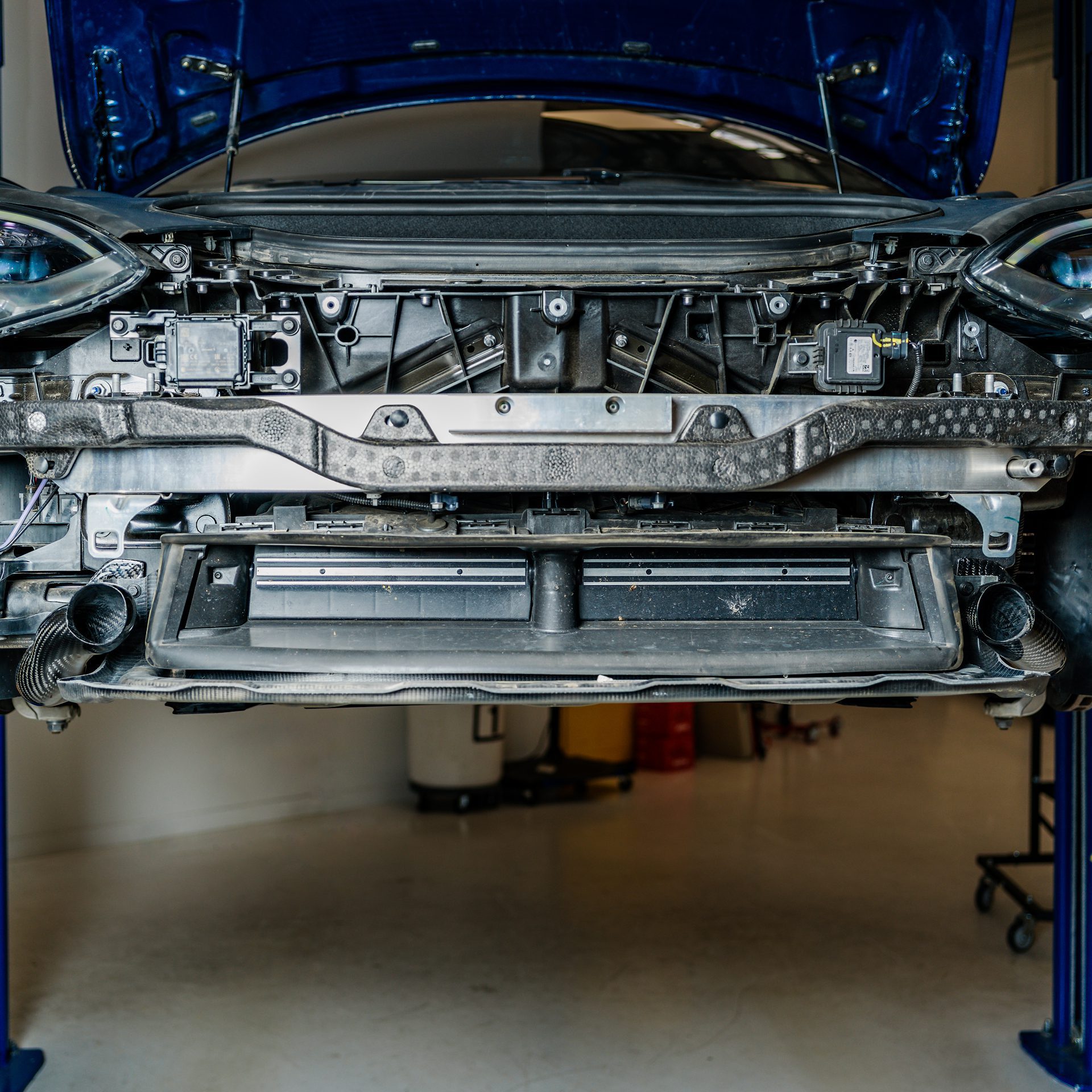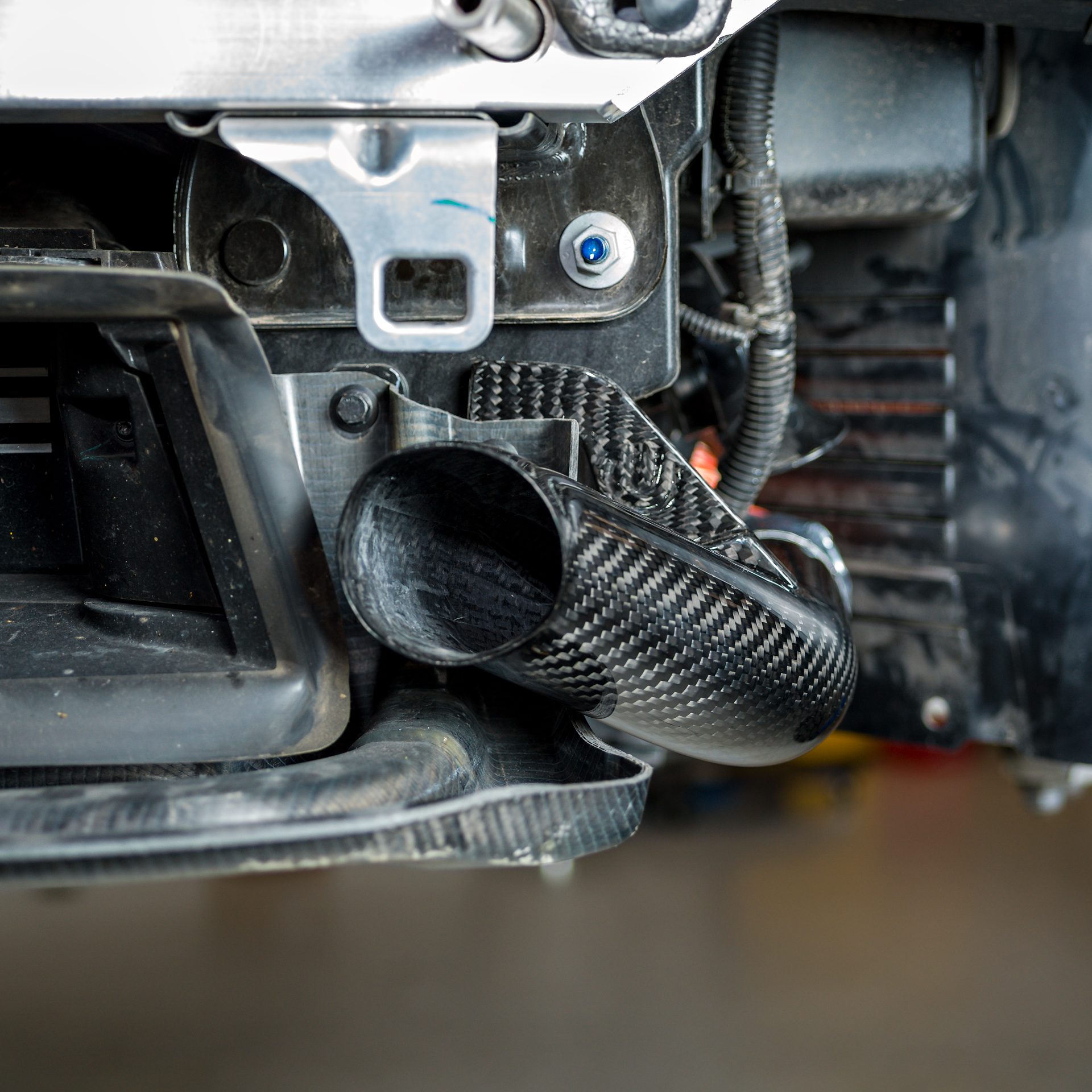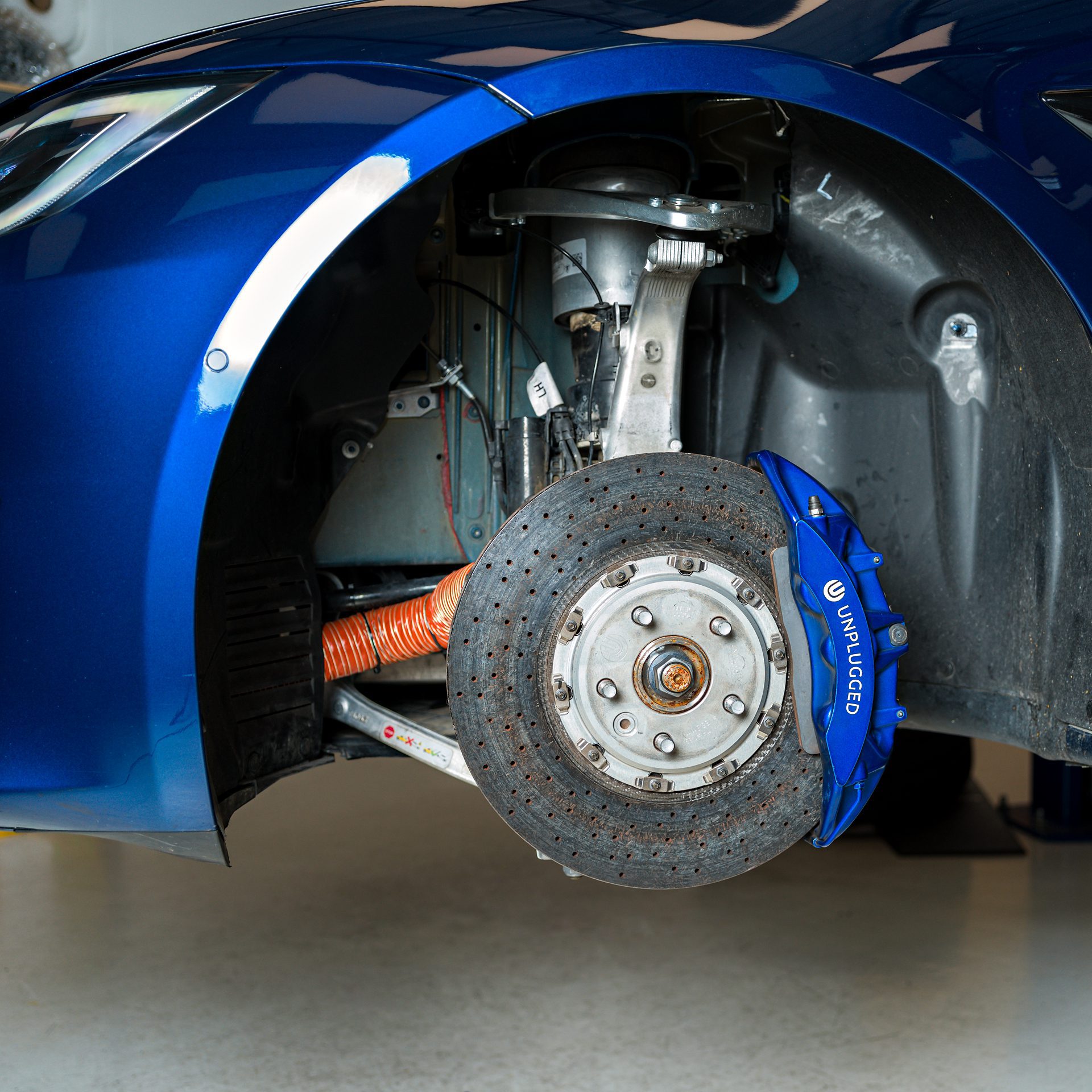 The Unplugged Performance carbon fiber brake ducting kit has been carefully developed over more than a year of testing, including Pikes Peak and multiple EV track-record runs. We have developed a kit that not only works but works so well that we feel compelled to recommend it to anyone who is considering pushing their Tesla hard. Front brakes do a vast majority of the work of stopping your Model S and greatly benefit from cooler operating temperatures under heavy use such as on a racetrack or other spirited driving environments.