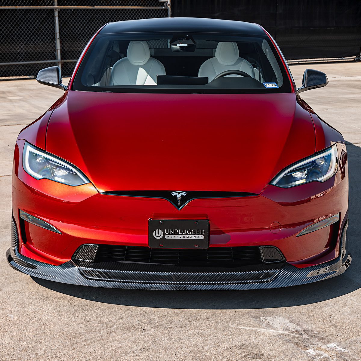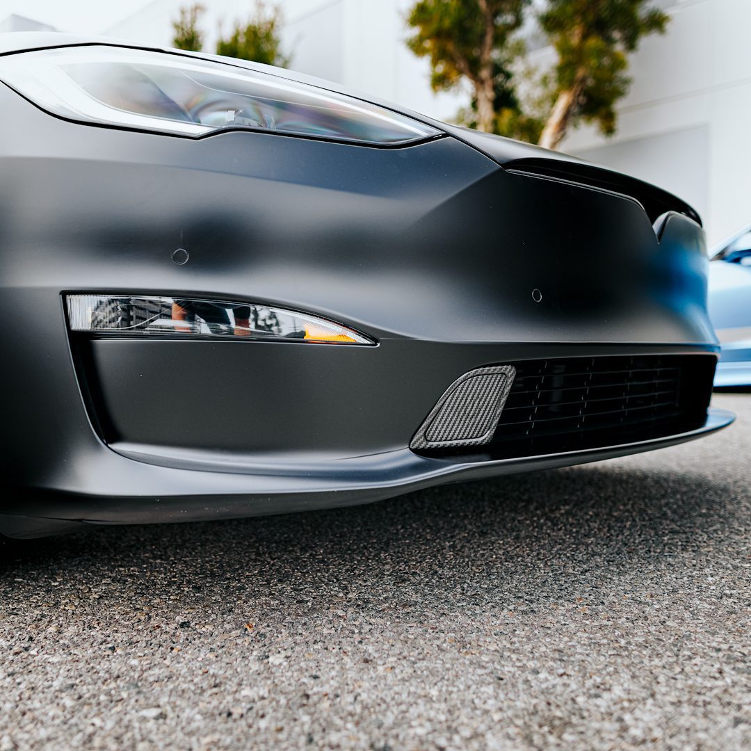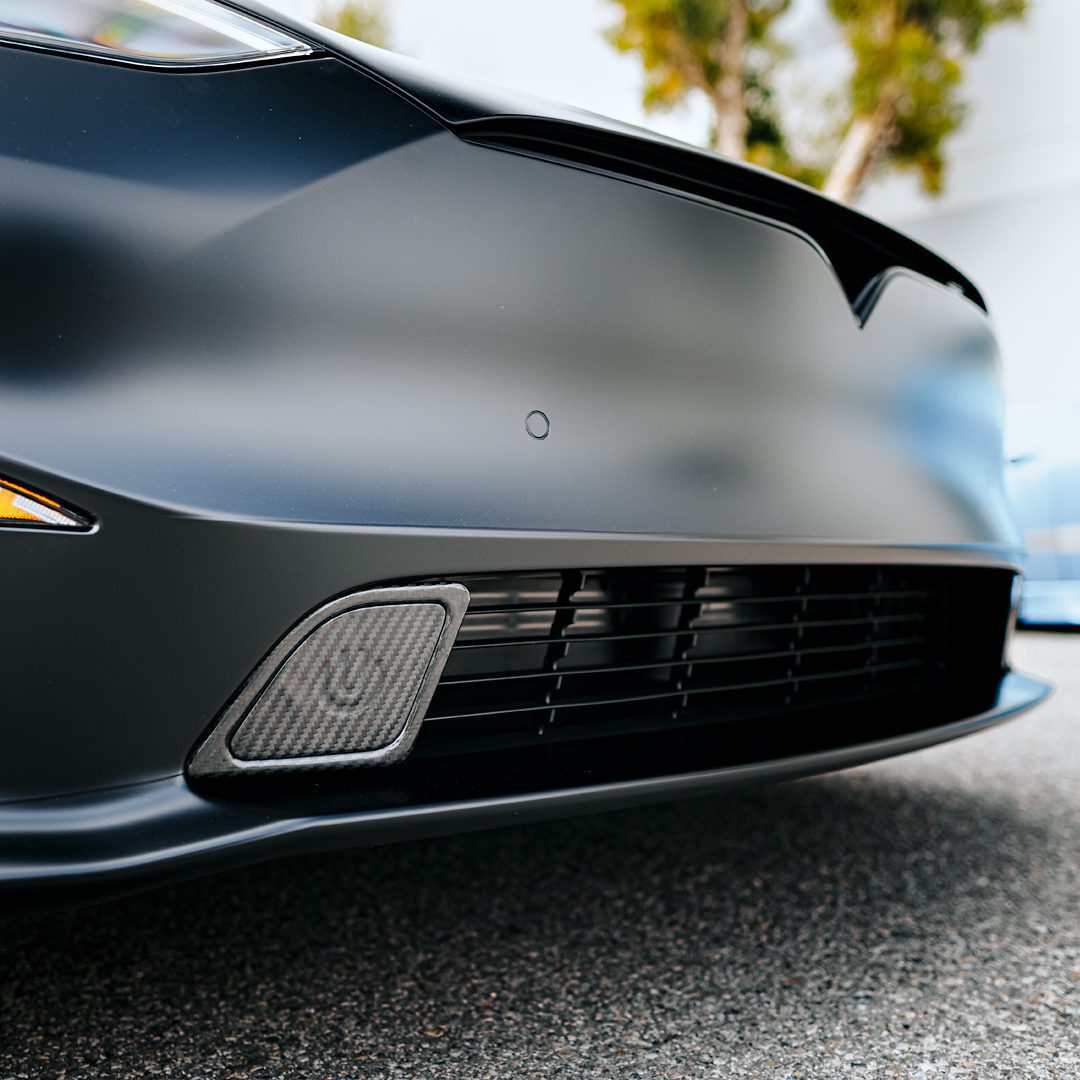 The Unplugged Performance carbon fiber brake ducting kit has been carefully developed over more than a year of testing in the harshest racing conditions. We have developed a kit that not only works but works so well that we feel compelled to recommend it to anyone who is considering pushing their Tesla hard. Innovative new design featuring removable magnetic duct covers eliminate road debris during normal driving. Form. Function. Safety. Have it all.
