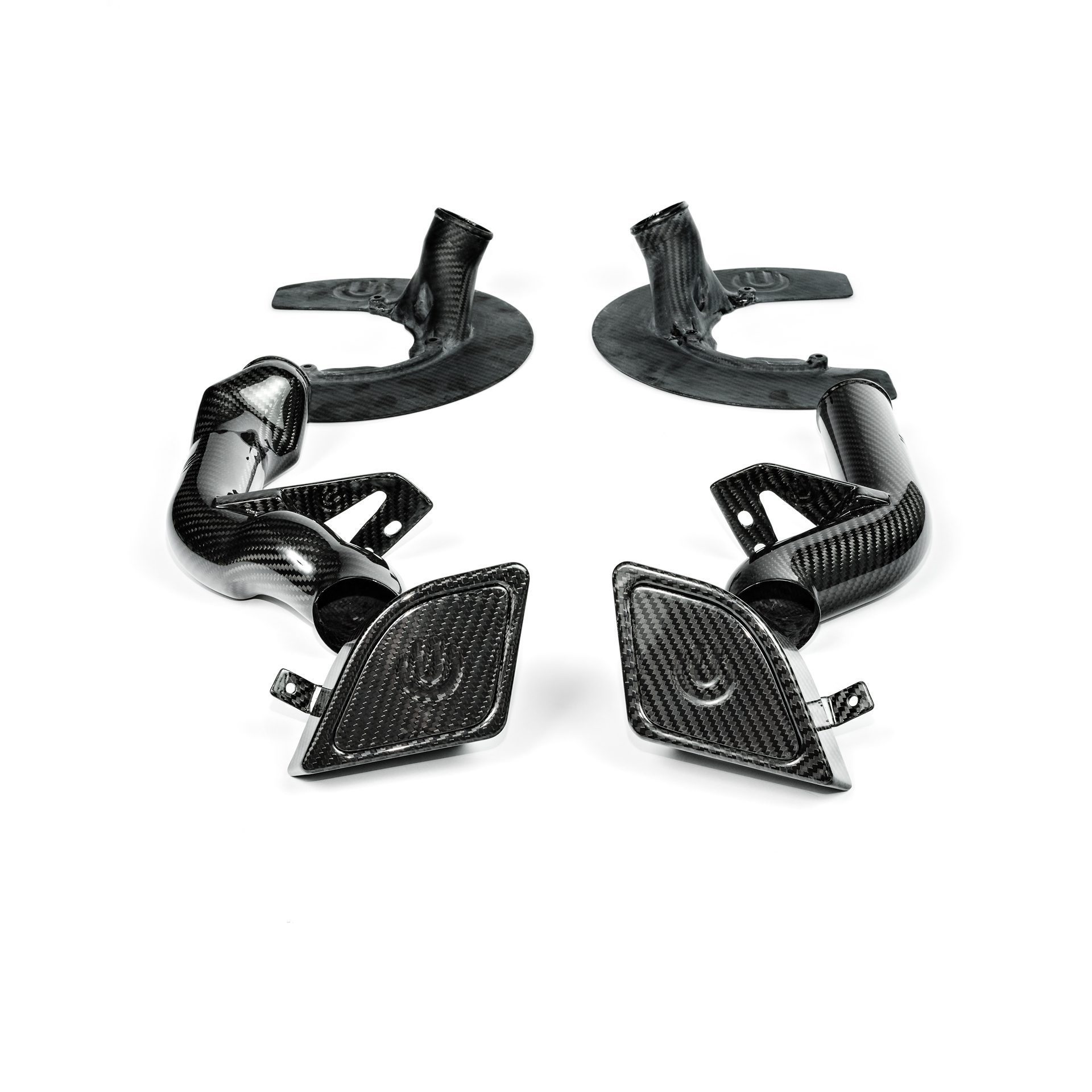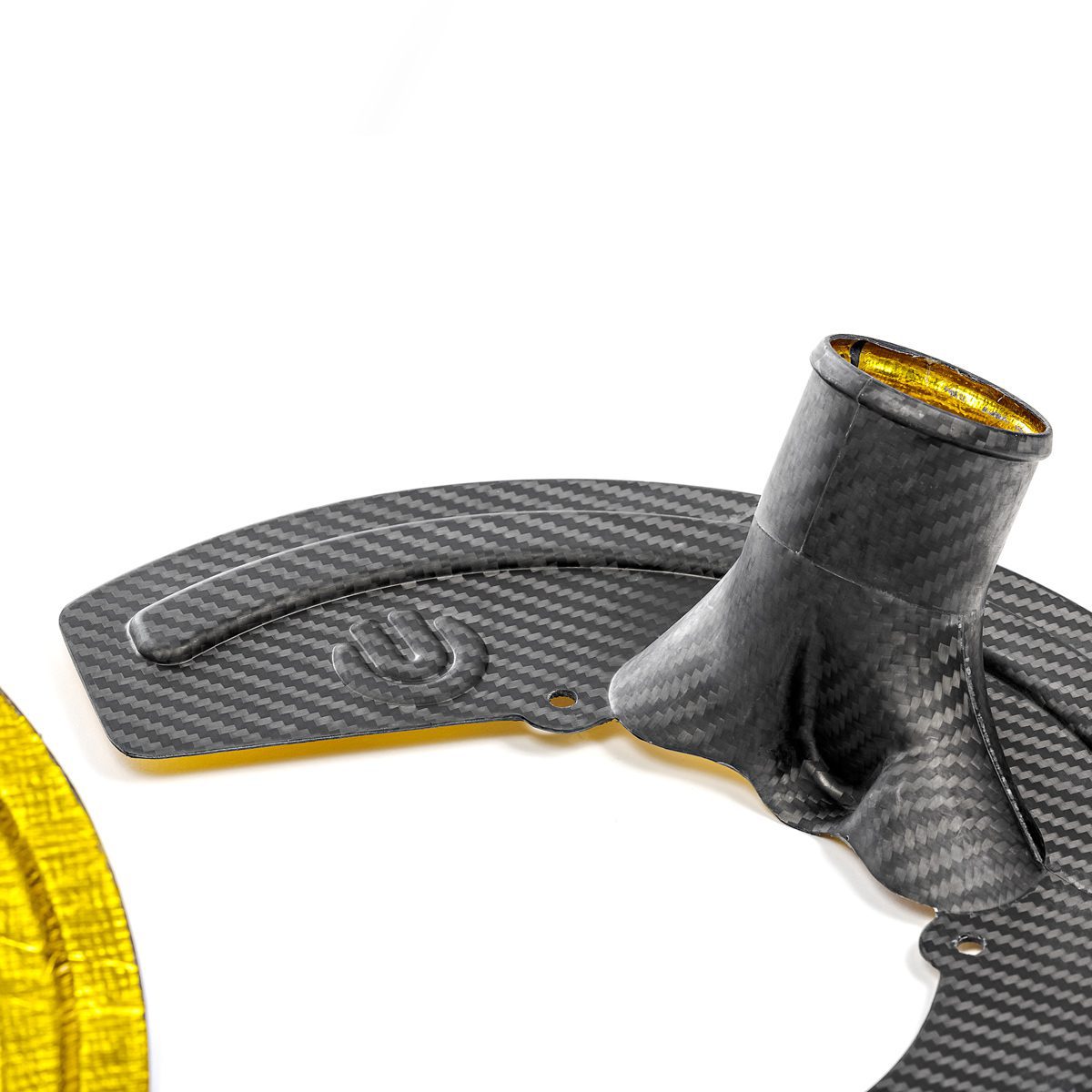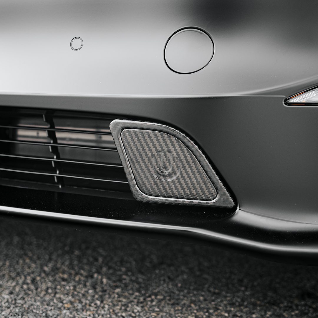 The Unplugged Performance carbon fiber brake ducting kit has been carefully developed over more than a year of testing in the harshest racing conditions. We have developed a kit that not only works but works so well that we feel compelled to recommend it to anyone who is considering pushing their Tesla hard. Innovative new design featuring removable magnetic duct covers eliminate road debris during normal driving. Form. Function. Safety. Have it all.