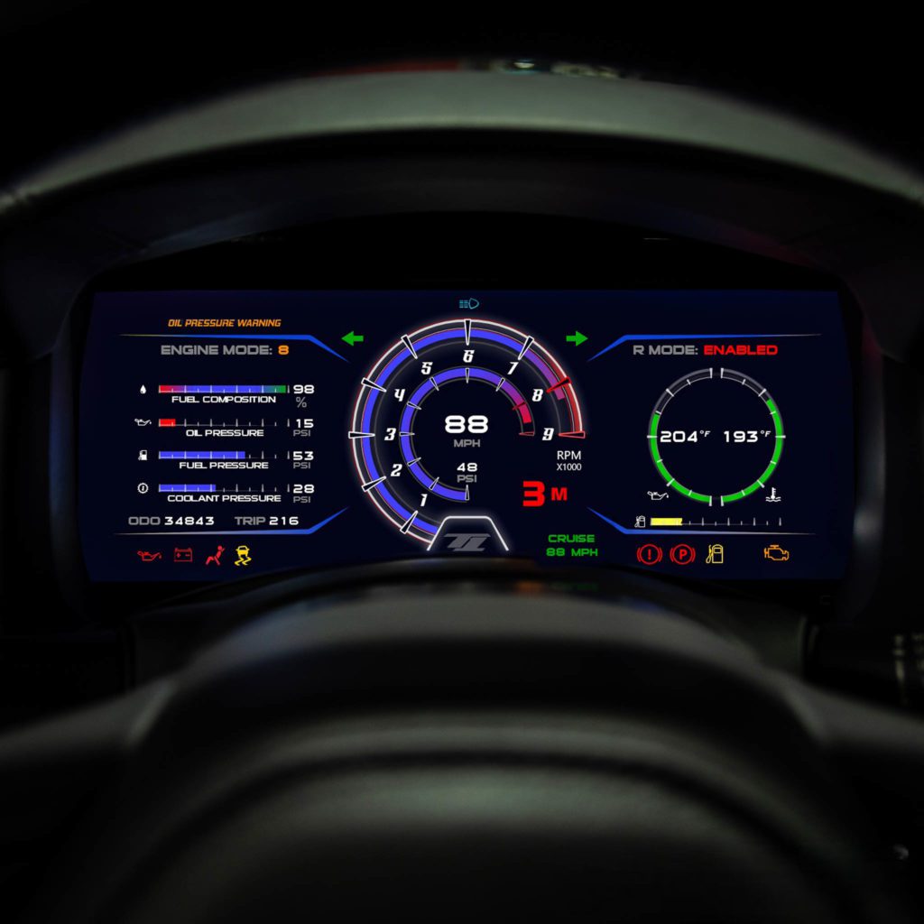 The GT1R MoTeC C1212 dash kit revolutionizes the look and feel of the R35 GTR. At the core of this transformation is the MoTeC C1212 display, featuring an impressive 12-inch diagonal measurement that completely fills the space of the stock instrument cluster. Its ultra-bright, vibrant, and anti-reflective screen ensures clear visibility even in direct sunlight.