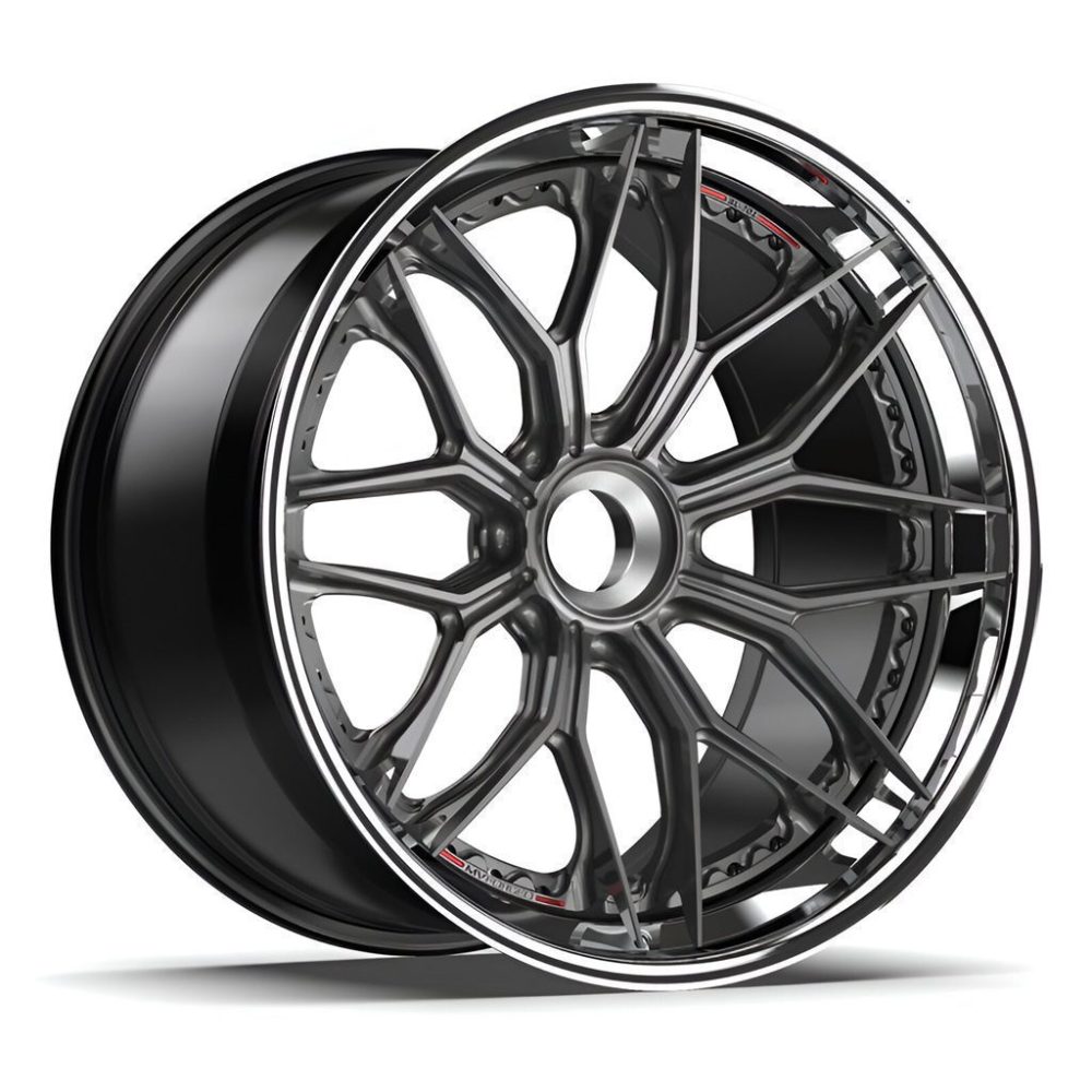 MV Forged has forged a name for itself with a revolutionary three-piece wheel structure, characterized by deep concave profile forgings and an original “floating spoke” design. This unique configuration causes the spokes to contour with the step lip surface’s curve, presenting a distinctive aesthetic unrivaled in the market.