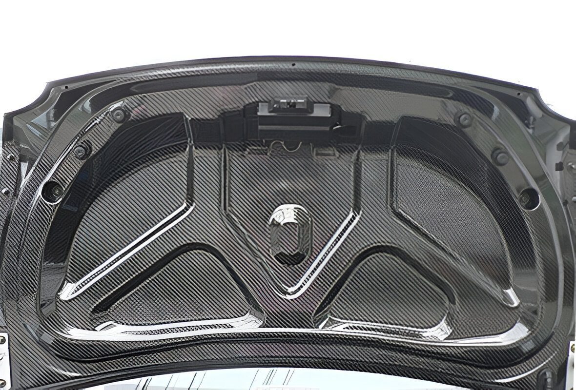 This CFRP trunk lid, featuring an integrated lip spoiler and molded in an autoclave, works in tandem with the rear wing to generate significant downforce, providing exceptional high-speed stability.