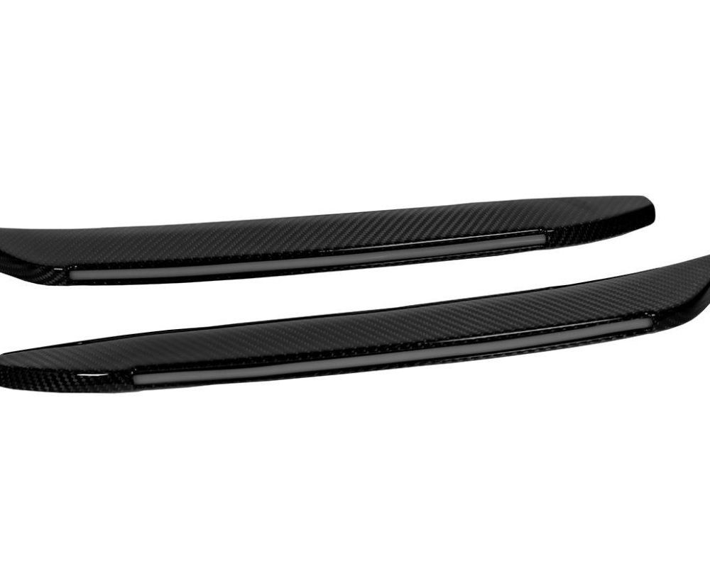 The NOVITEC Carbon Front Bumper Inlets with LED for the Rolls-Royce Spectre add a distinctive and functional design element to the vehicle’s front fascia. Precision-formed from lightweight carbon fiber, these aerodynamic inserts integrate seamlessly into the factory bumper, enhancing airflow while reinforcing the car’s dynamic presence. Each inlet is equipped with a sleek, integrated LED light strip that provides a modern visual accent and increased visibility. Blending refined materials with subtle illumination, this upgrade elevates both the aesthetic and functional appeal of the Spectre’s front-end styling.