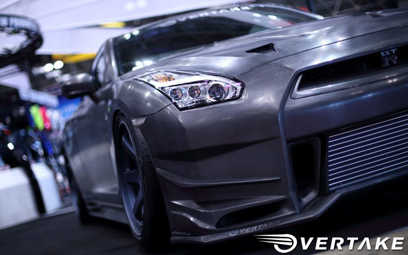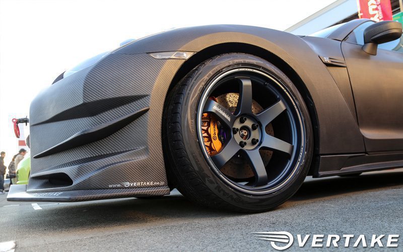 Overtake designed this front bumper set with aerodynamic performance in mind. This kit will dramatically update the look to your GT-R. This pieces to this kit are made from a twill dry carbon material. Kit includes 11 parts; front bumper, front diffuser (L, R) front grill, front canards (R, L), front oil cooler duct (R, L), front brake ducts (R, L). Replacements for each piece can be ordered separately from Overtake if needed. Contact us for more information.