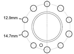 (The 405mm upgrade disc will only replace the 390mm standard disc fitted on cars from 2011). The hat has 5 x 12.9mm / 5 x 14.7mm bolt holes.