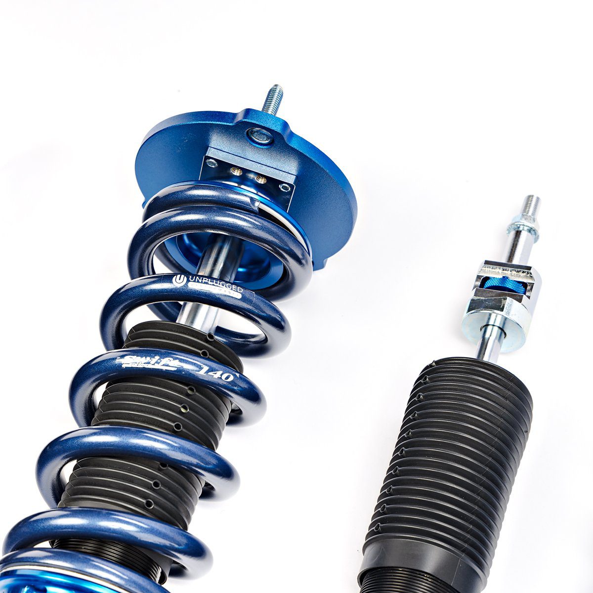 For maximum performance the best drivers turn to Unplugged Performance. The Race Spec coilovers take the winning combination of our coilovers and add pillowball top hats, race specific valving profiles and race specific spring pairings. Drivers on the race spec coilovers have set world record lap times at multiple circuits including Tsukuba Circuit in Japan and Buttonwillow Raceway in California. Race Spec coilovers have a wide range of adjustability, however unlike our regular coilovers these will be more firm than the factory suspension for street use.