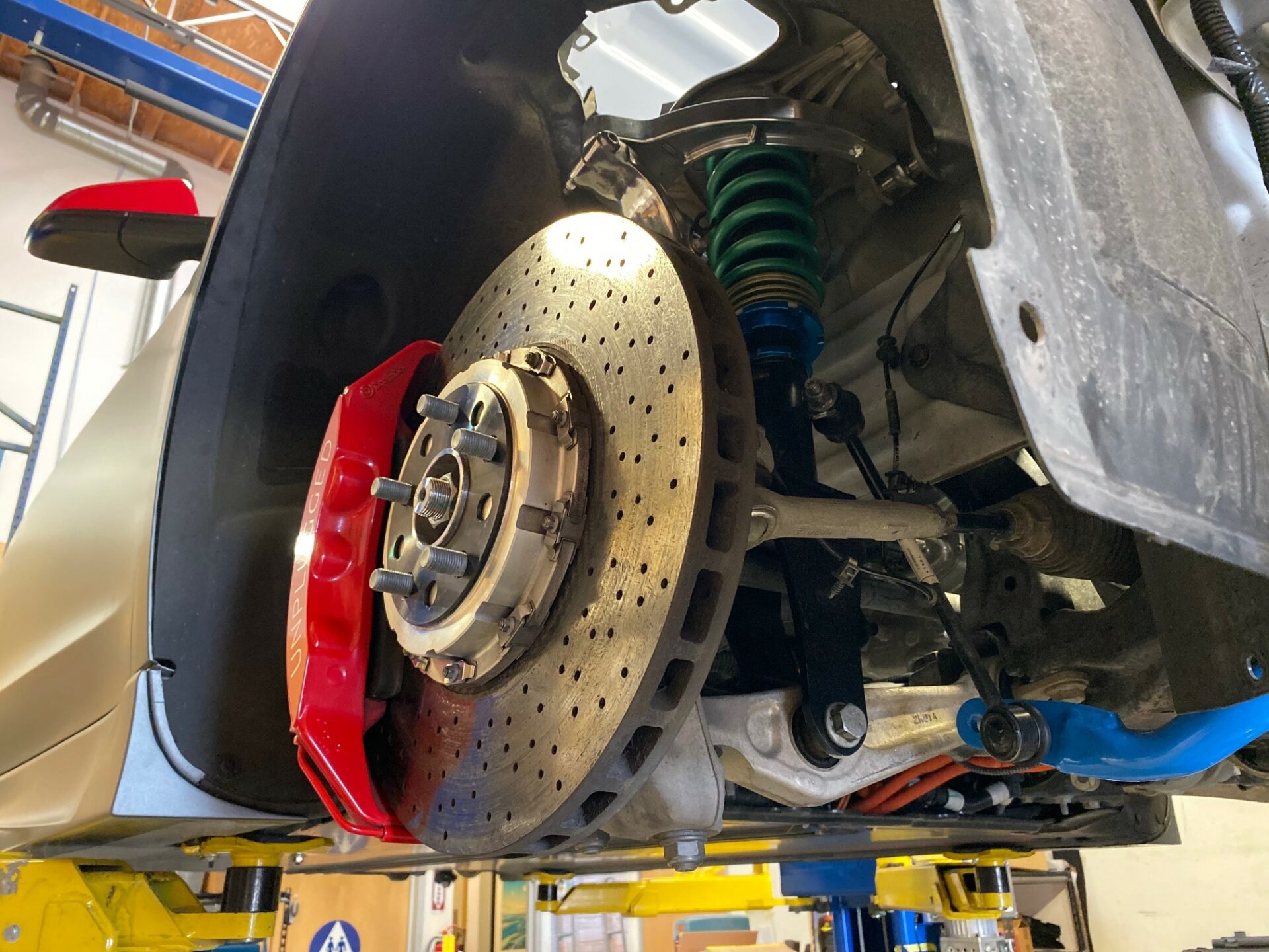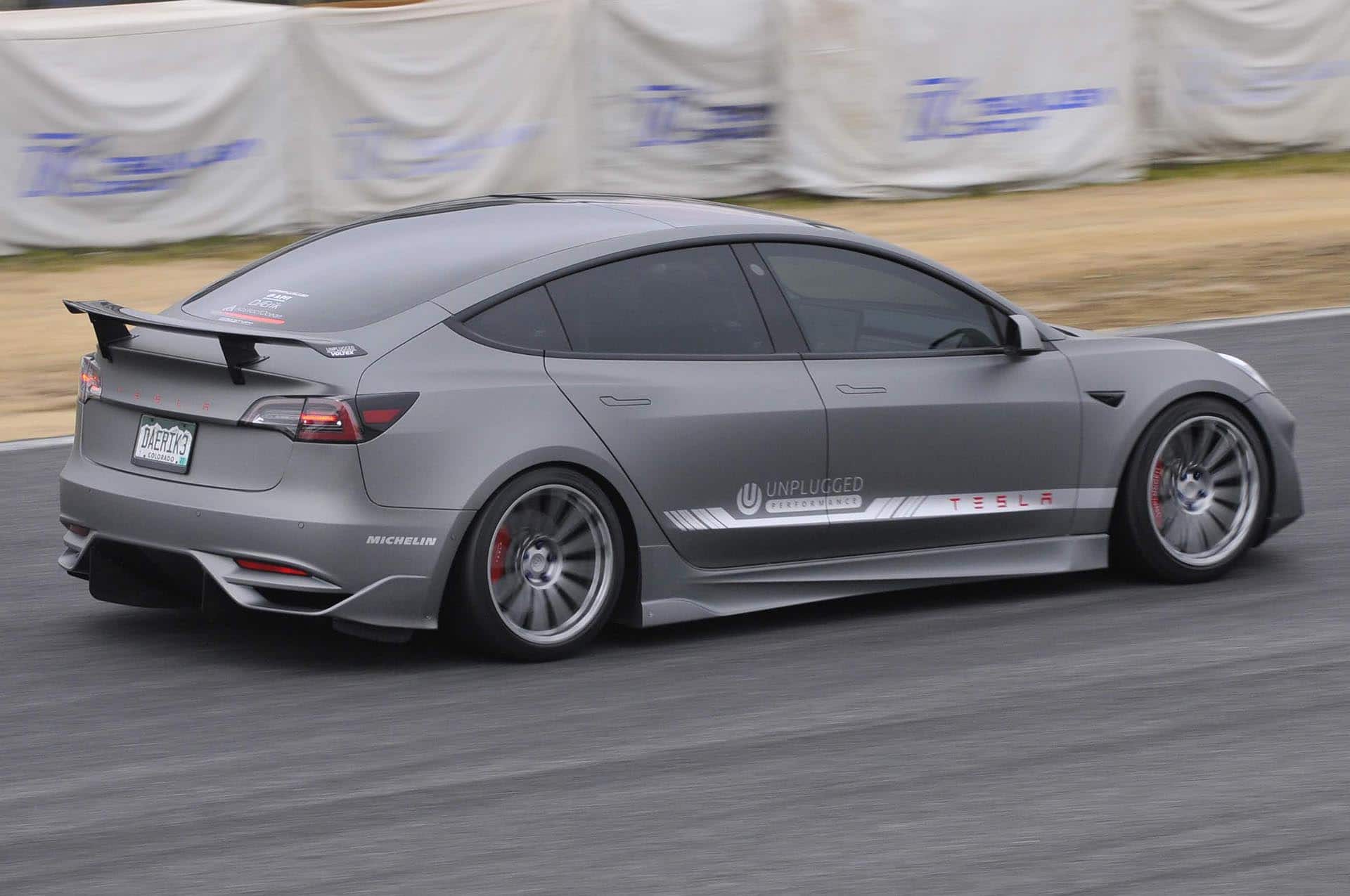 Coilover Kit, Pro Race – https://unpluggedperformance.com/product/model-3-pro-race-coilovers/