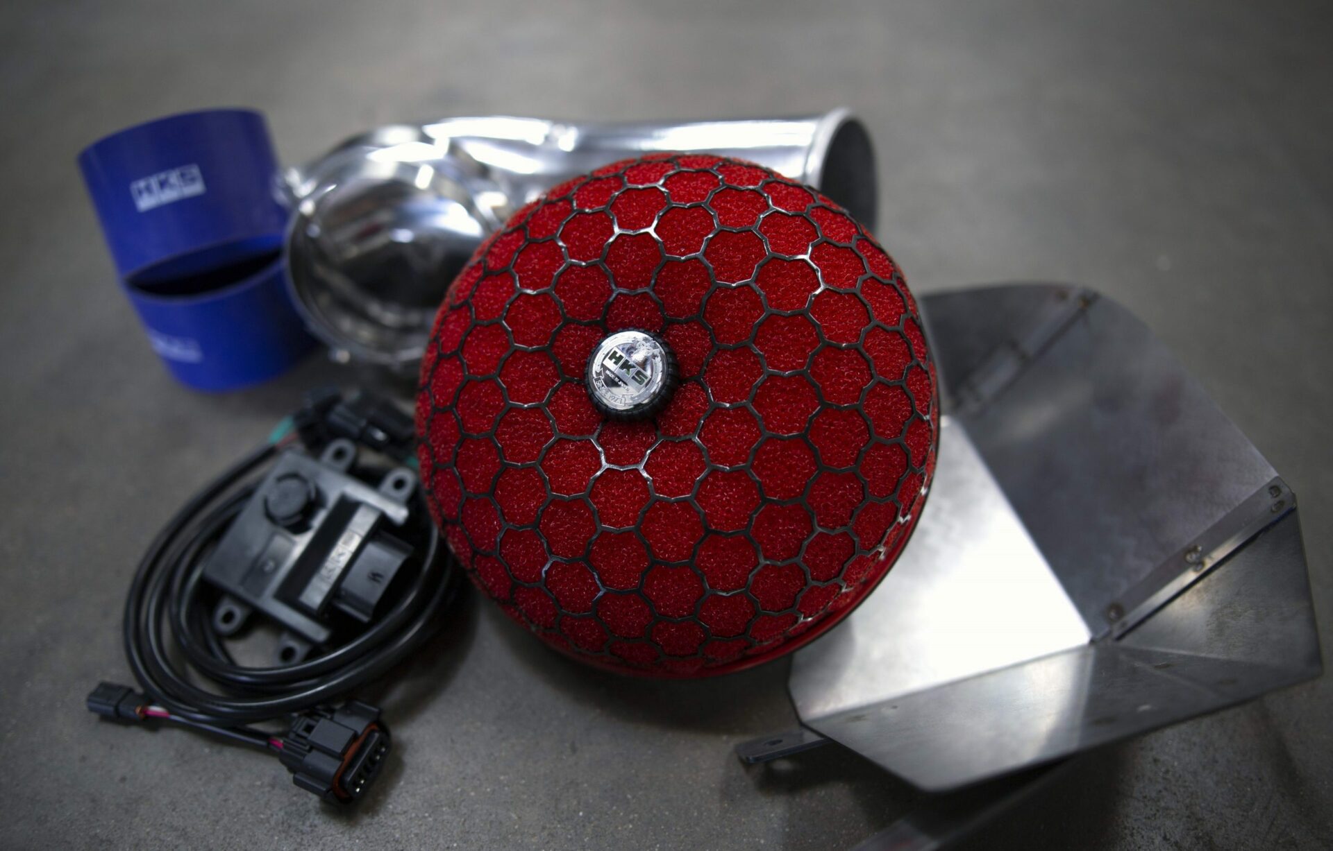 Replacing all necessary parts between the HKS air cleaner assembly and the throttle (to the compressor housing on turbo cars) allows eliminating air intake restrictions and increasing air intake efficiency, providing a dramatic improvement in engine response and performance. Exclusively for some vehicles only, a direct type Super Power Flow air cleaner assembly is available. It provides a smooth airflow from the entrance point of the filter to the throttle valve.