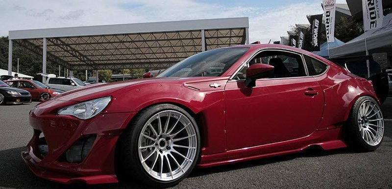 TRA Kyoto designed this widebody kit version 1 for the Scion FR-S. Included in this kit is the FRP front lip, FRP side skirts, FRP front over fender set +40mm, FRP rear over fender set +65mm, rear under diffuser +60mm.