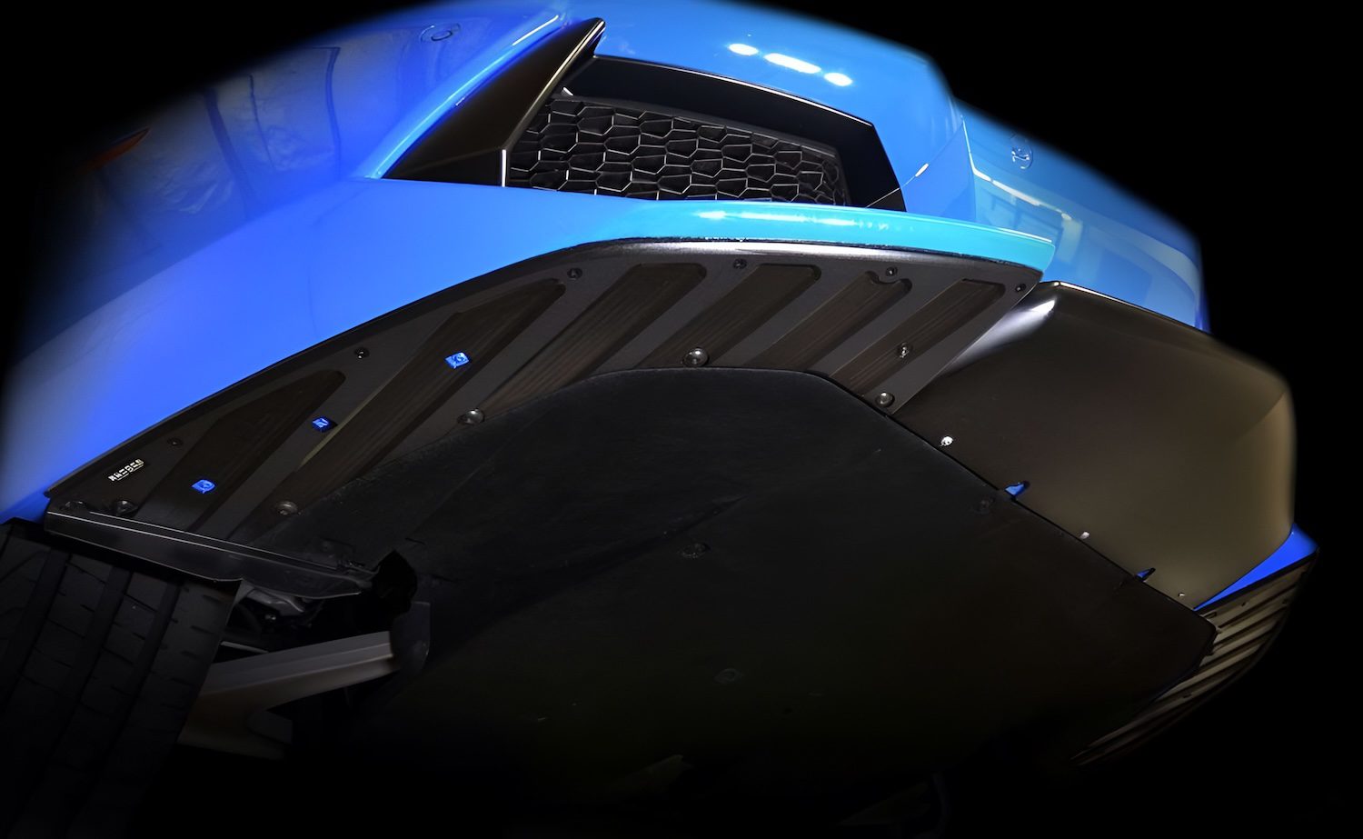 Scrape Armor front bumper protection protects the LP700-4 Aventador’s front bumper with TekLite polymer, GlideTek rails, and ElipTek edges to reduce friction, stress, and snags.