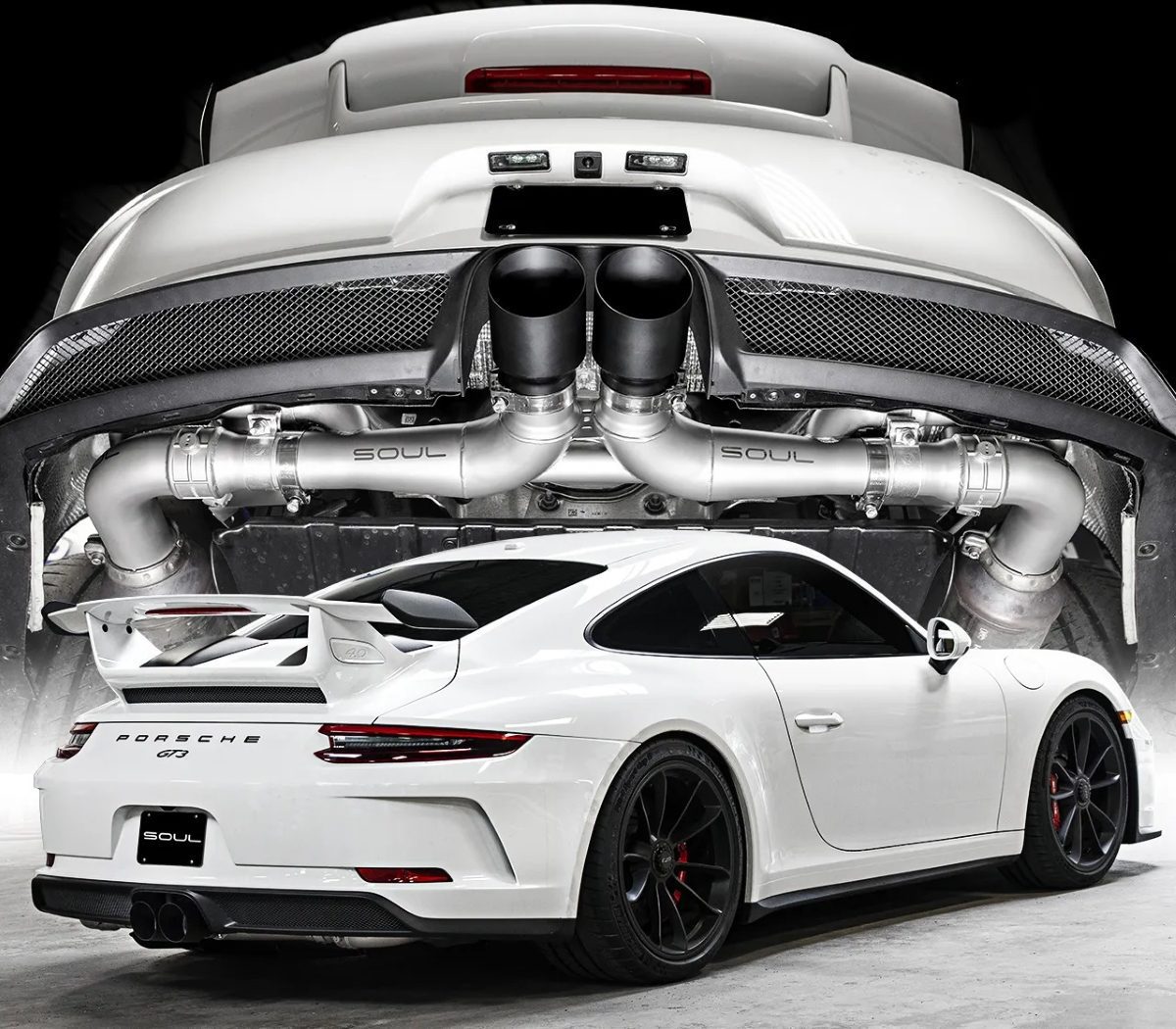 Soul Performance Center-Muffler-Bypass Exhaust System with Slash Satin Black Tips for 991 Porsche 911 GT3 / GT3 RS / R