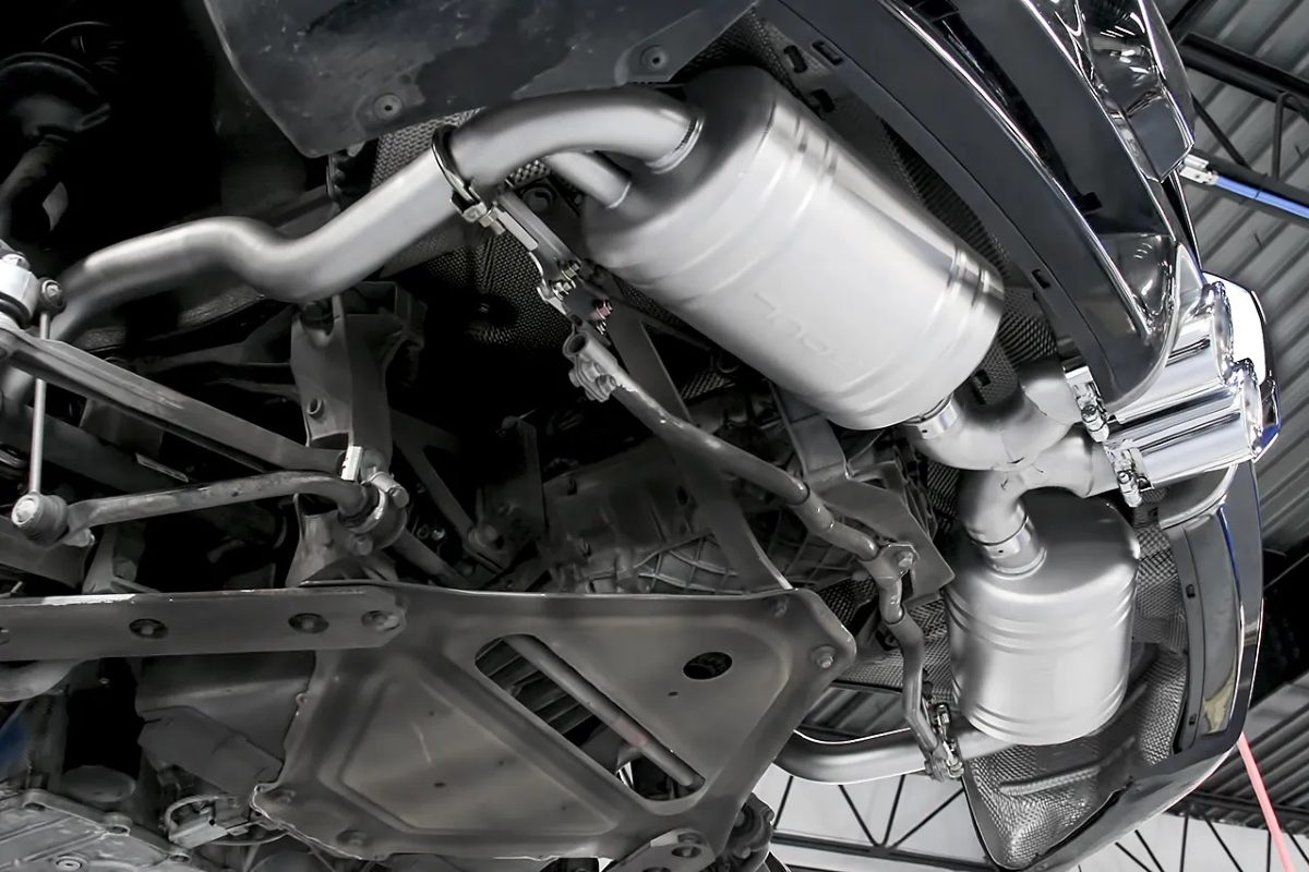 The factory exhaust system on the 987.1 Boxster / Cayman, designed by Porsche, restricts the true capabilities and character of the flat six engine. This is accomplished through the incorporation of restrictive secondary catalytic converters, small tubing, and heavy mufflers. To unlock the full potential of the engine and enhance its distinctive sound, Soul Performance Products has developed a system that utilizes free-flowing mandrel bent piping and high-quality mufflers. This carefully crafted system allows for an exhilarating increase in the hair-raising flat-six sound during throttle application while effectively eliminating drone during cruising, even when aftermarket headers are installed.