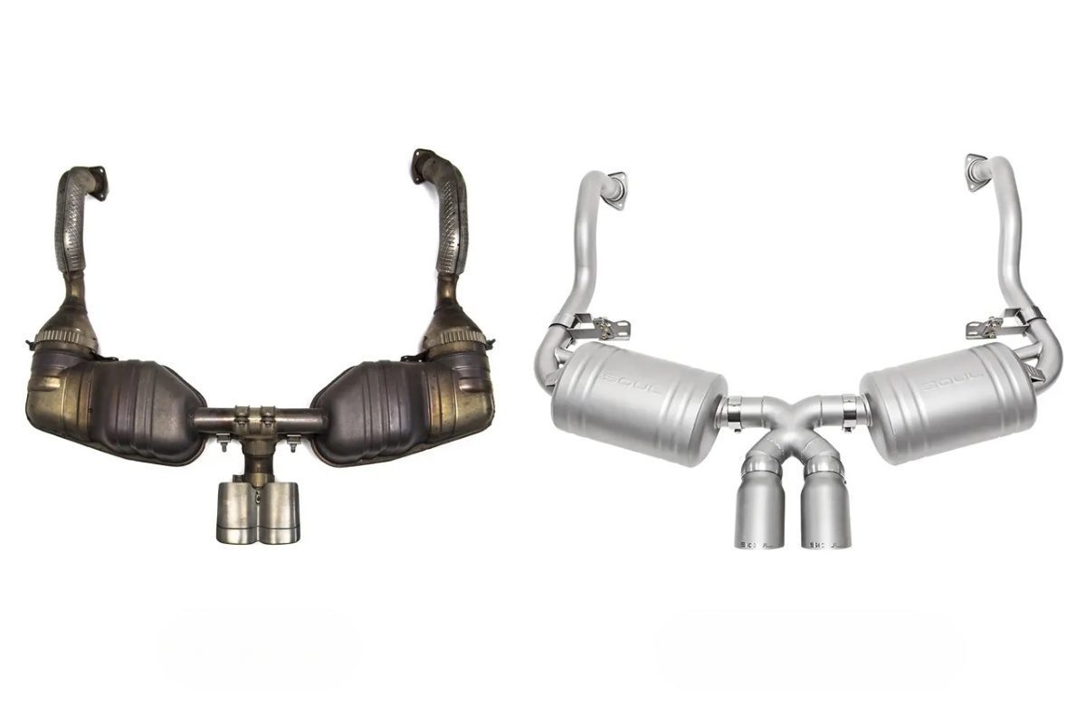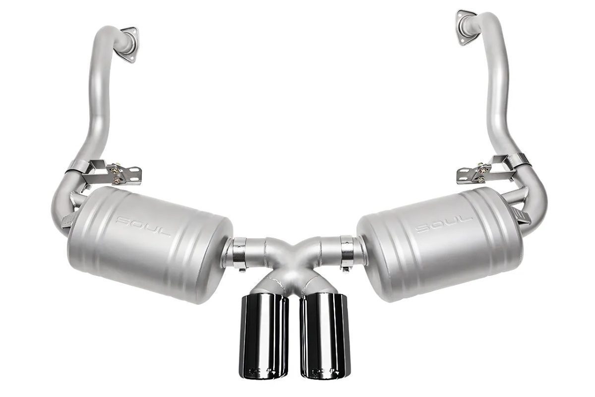 • With extensive experience working with various exhaust configurations for the 987.1, the team at Soul Performance has dedicated themselves to crafting the ultimate setup for automotive enthusiasts. After careful consideration, they have chosen a design that delivers an exceptional sound experience when the pedal is pushed, while maintaining remarkable refinement during everyday driving. The engineering of the SOUL mufflers ensures the near elimination of droning, even when paired with aftermarket catless headers, resulting in a composed and controlled sound during partial throttle. This impressive performance is achieved without the need for valves, as Soul Performance is confident that their system offers a solid option for those seeking an exhaust that delivers an exhilarating note when appropriate, yet remains subdued for daily driving. Rest assured, this system guarantees no check engine lights, only a grin every time you accelerate.