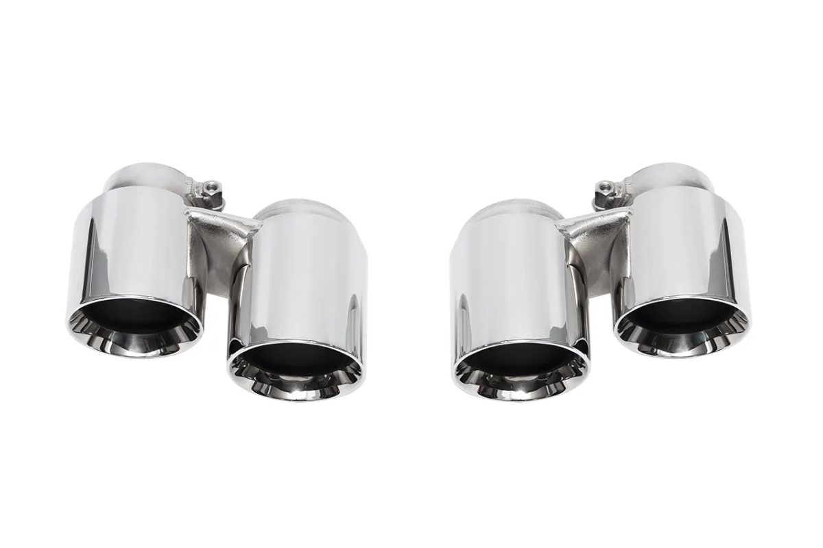• Crafted from T304L stainless steel, the polished chrome tips are meticulously chrome coated, resulting in a resilient and long-lasting finish. An optional black PVD coating is available for those seeking an exquisite black chrome appearance. If carbon fiber is your preference, the authentic rolled-edge matte-carbon shells seamlessly combine with stainless steel, providing a distinctively sleek and stealthy look to complete your Porsche 991.1’s rear end. Prior to shipping, each set undergoes rigorous quality checks and is carefully foam packed to ensure they arrive in impeccable condition.
