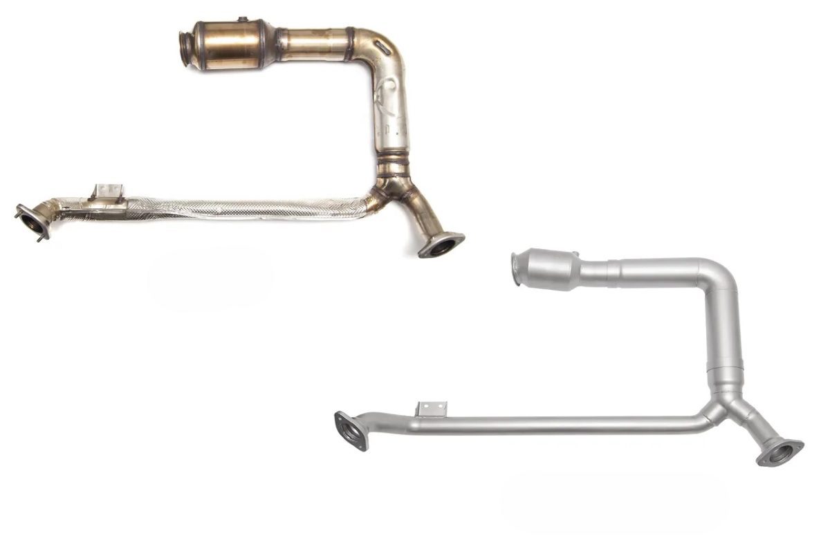 By opting for a bolt-on solution, one can replace the constrictive stock catalytic converter with a high-flow HJS HD 200-cell catalytic converter downpipe. This upgrade delivers notable improvements in power, responsiveness, and even enhances the turbo sound. Importantly, this modification ensures that there will be no check engine light triggered, and it effectively eliminates the presence of noxious fumes.