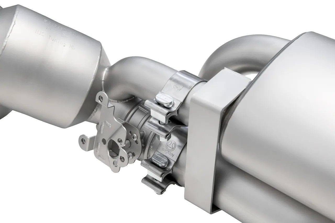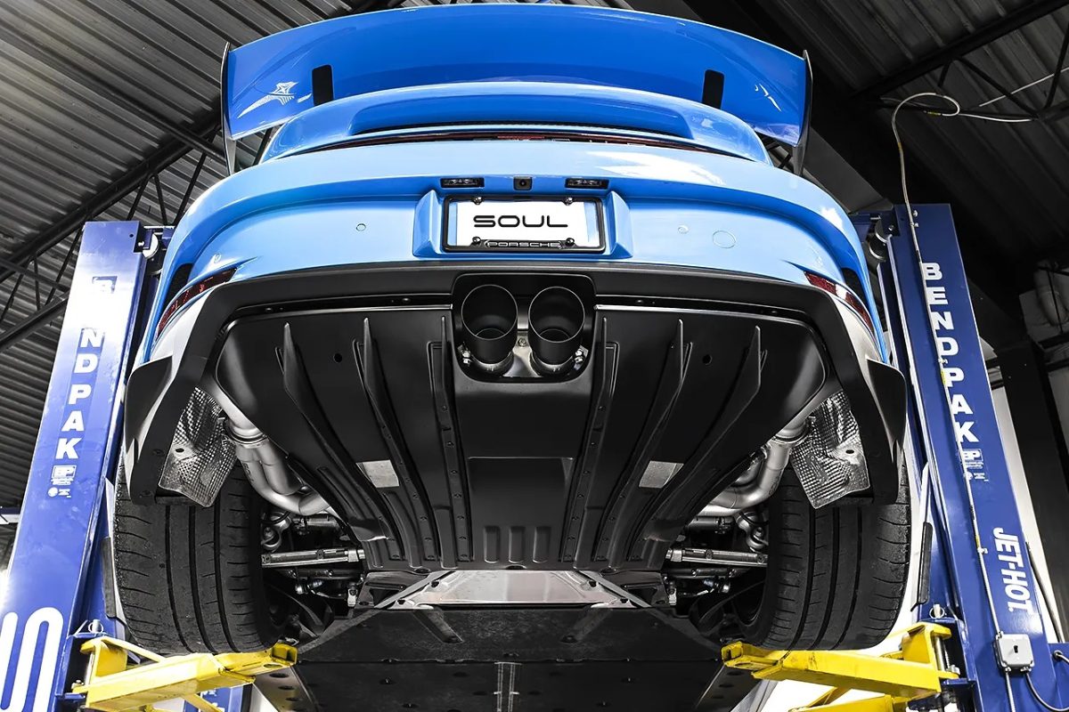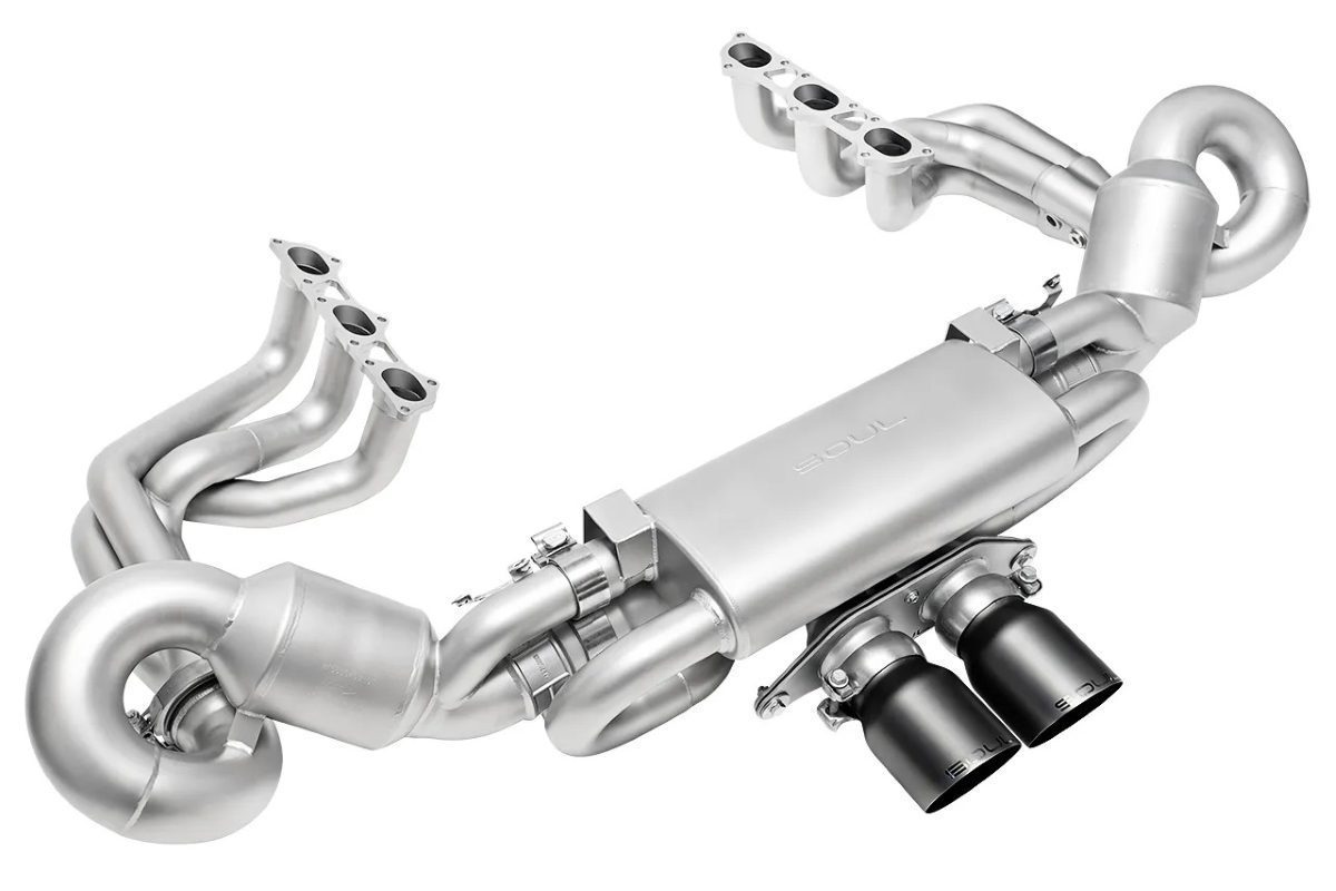 Elevate the level of aggression and excitement in your 992 GT3 by adding a SOUL header and muffler package. The incorporation of long tube runners and precision CNC-machined merge collectors maximizes the flow efficiency from the headers. This optimizes the exhaust pathway, channeling the gases into a custom-designed x-chamber muffler (valves closed path) and a large-diameter x-pipe (valves open path), resulting in a more refined, higher-pitched, and smoother sound. Experience the heightened tone and enjoy the ability to control the volume through the subtle movements of your right foot.