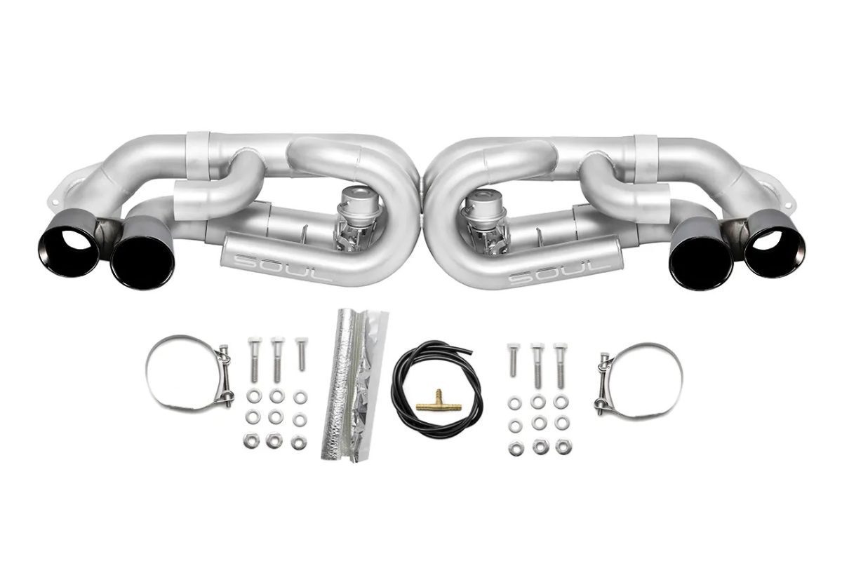 The 991.1 Carrera Valved Performance Exhaust System by Soul Performance has been meticulously crafted with passionate car enthusiasts in mind, catering to individuals who yearn for an exceptionally thrilling driving experience. When the valves are open, the exhaust gases effortlessly find their way through unobstructed channels, creating a breathtaking symphony produced by the flat-six engine. The resulting tone is so captivating that it will send shivers down one’s spine. Whether in route to meet a client or embarking on a special dinner outing, simply closing the valves provides a refined and understated sound courtesy of the remarkably capable factory side mufflers. Rest assured, for those who possess a PDK-equipped car and are concerned about excessive noise, this exhaust system will not disappoint by generating any intrusive drone.