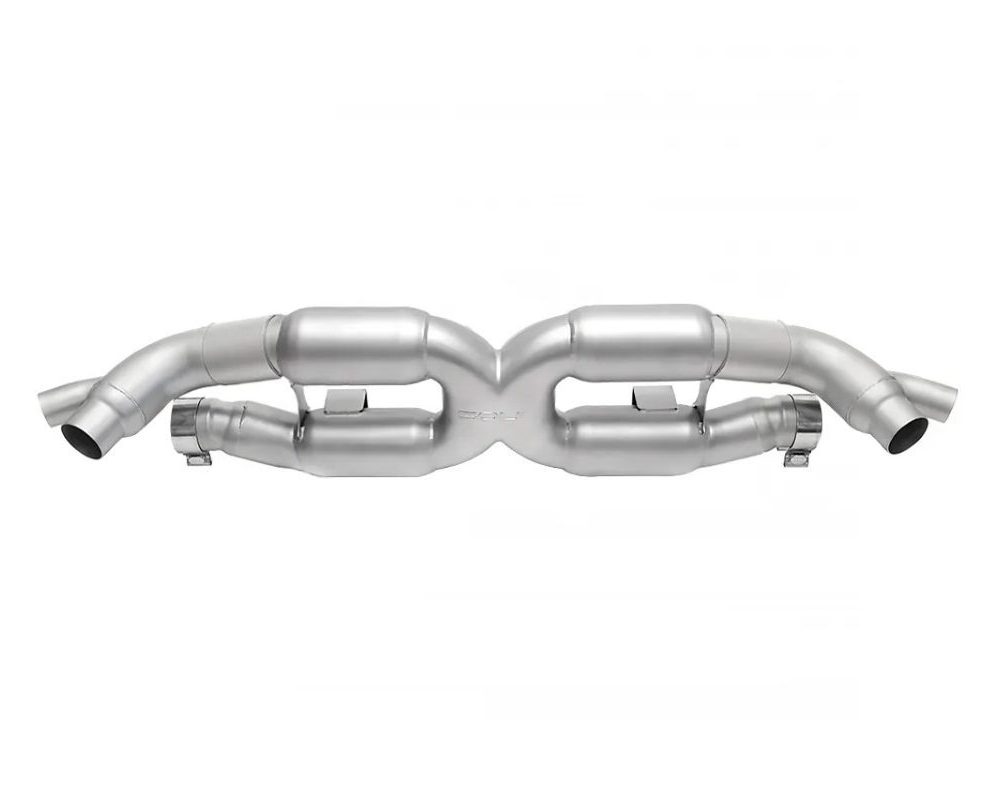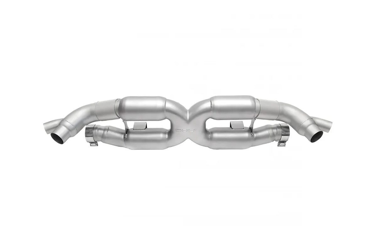 By opting for an x-pipe exhaust upgrade, retaining the factory catalytic converter sections is possible. This approach involves incorporating a proprietary x-pipe design, utilizing 3″ piping, and integrating quad race resonators into the system. The combination of these elements is specifically engineered to facilitate significant power gains and deliver an exhilarating transformation in the sound of the flat six engine, accentuated by an intensified turbo wail. This upgrade enhances performance and adds a distinct and thrilling auditory experience to the driving dynamics.