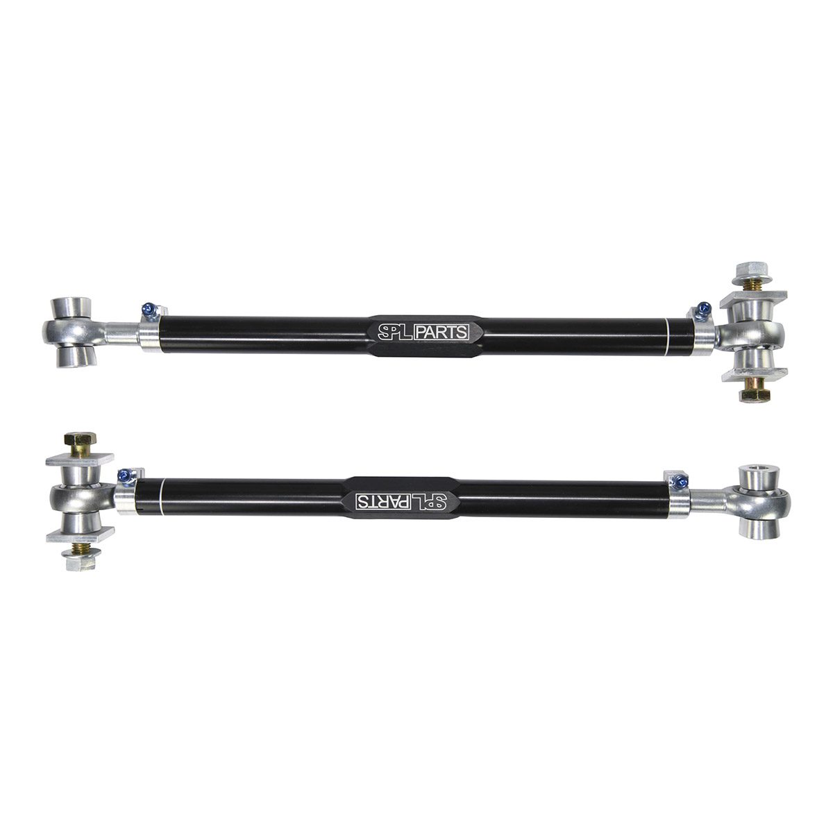 SPL Parts’ Rear Toe Arms (RTA) enhance stability and responsiveness by eliminating bushing deflection while offering an extended range of rear toe adjustment, essential for lowered vehicles or performance-oriented alignments. Even minor adjustments to ride height and camber affect toe settings, and the wide range of adjustment provided by SPL Parts allows for maximizing grip on track cars and extending tire life on street cars. The OEM rear toe arms use an eccentric bolt and washer for adjustment, lacking the precision and range that SPL Parts’ Rear Toe Links deliver. Black anodized and gun-drilled 2024 aluminum main links, combined with the 360-degree rotating clamp design, enable fast and precise adjustments.
