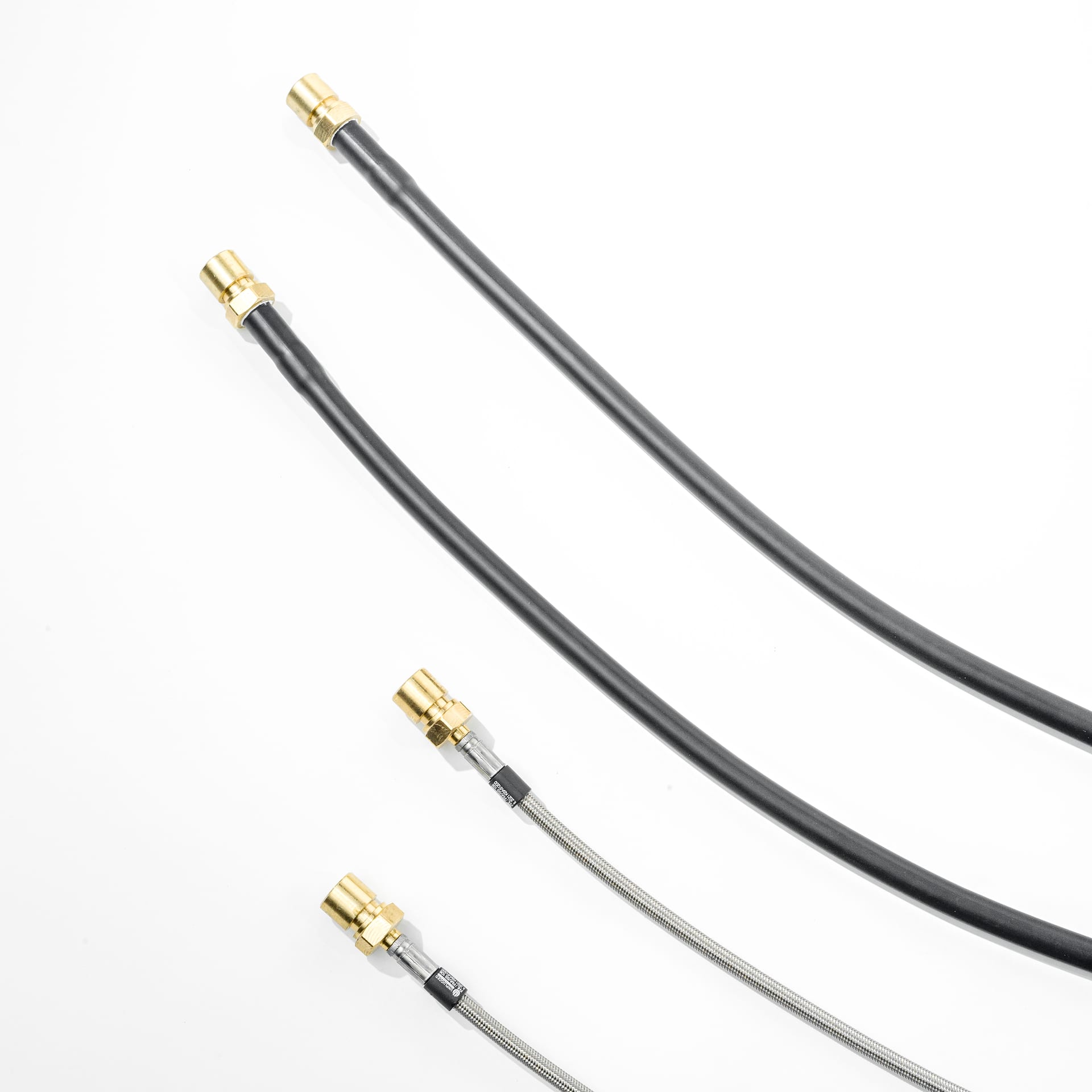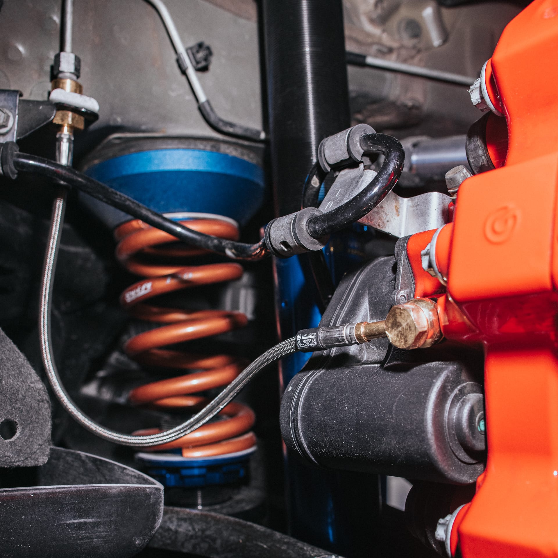 From the factory, almost all mass-production cars include rubber brake lines. Rubber is a great option from carmakers’ perspective as it is durable, resilient, long-lasting, and most importantly, low cost. However, there are some compromises that come with rubber brake lines, including the ability of the actual hoses to expand and contract under hard braking. This expansion leads to a spongy brake pedal feel, which is actually a loss in braking capability that you’re feeling.