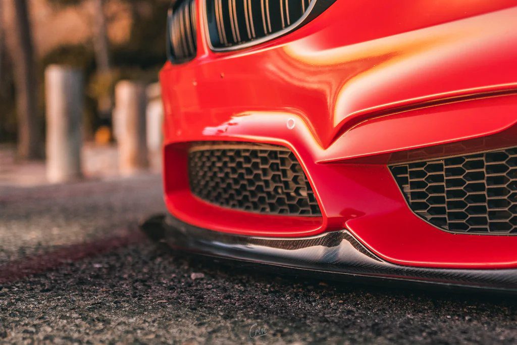 The STREETFIGHTER LA Carbon Fiber Front Lip for the BMW F80 M3 and F82 / F83 M4 enhances aerodynamics and styling with a precision-engineered, lightweight design. Made from high-quality carbon fiber, it ensures an OEM-quality fit, improves downforce, and installs easily using factory mounting points.