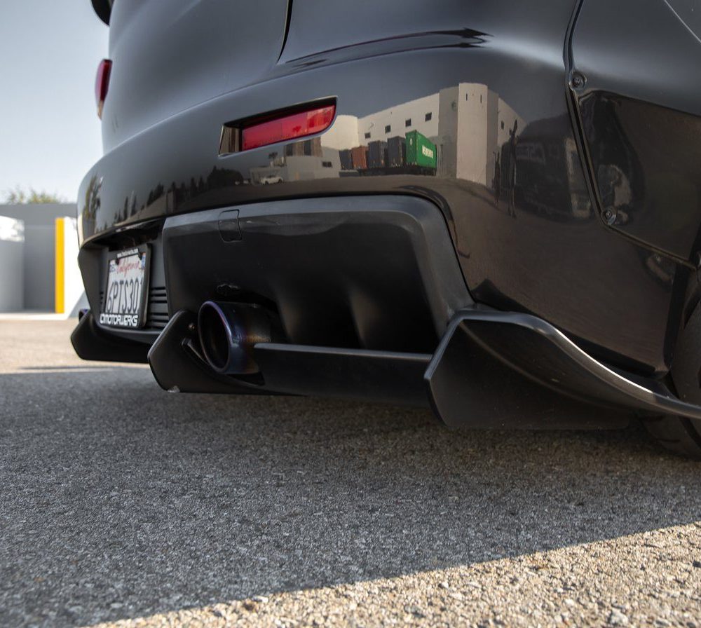 The STREETFIGHTER LA Rear Diffuser for the Mitsubishi Evo X enhances aerodynamics and styling with a durable, three-piece FRP design. Optimizing airflow and stability, it offers a race-inspired look with easy bolt-on installation. Made in the USA, it ensures a precise fit for street and track use.