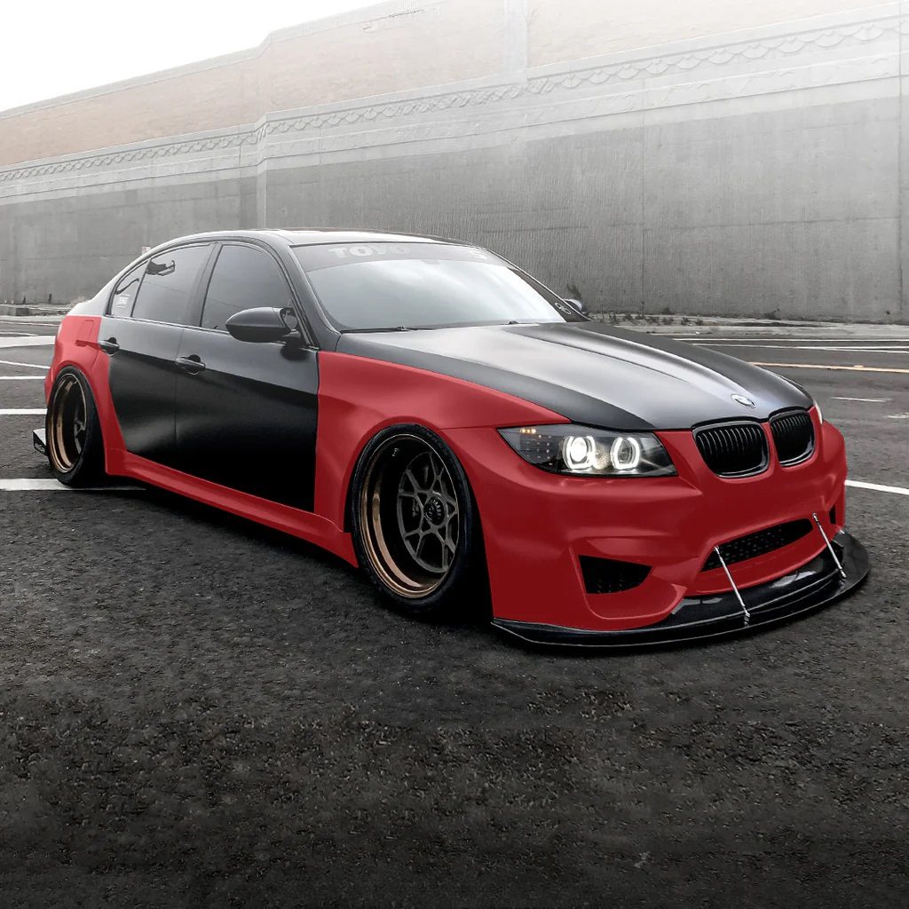 The STREETFIGHTER LA Wide Body Kit for the E90 /E91 BMW 3-Series is an FRP kit that includes a front bumper, front fenders, side skirts, rear flares, door extensions, and a rear bumper. Designed for a precise fit, it enhances aerodynamics, wheel fitment, and the car’s aggressive stance while maintaining factory lines.
