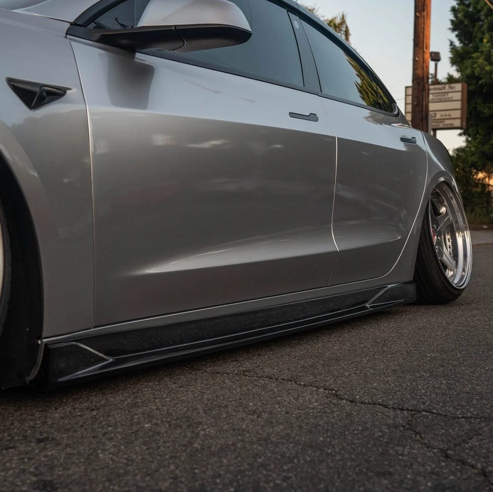 The StreetHunter Designs Side Skirts for the Tesla Model 3 are expertly crafted to enhance both the style and performance of your vehicle. These sleek side skirts not only elevate the visual appeal but also improve aerodynamics, offering a functional and aesthetic upgrade. Designed for easy installation, the kit includes 3M double-sided tape and all necessary hardware, allowing for a hassle-free fitting process without the need for professional assistance. Transform your Tesla Model 3 with these dynamic side skirts, ensuring both a stylish look and improved performance.