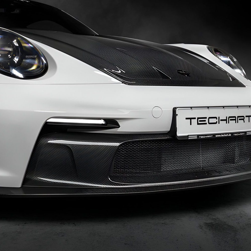 The TECHART Air Intake Panel for the Porsche 992 GT3 is a precision-engineered upgrade that enhances both performance and aesthetics. Constructed from lightweight carbon fiber, it integrates seamlessly into the vehicle’s design while optimizing airflow for improved cooling efficiency. The panel features a service hatch with aerodynamic fins on both sides, ensuring functionality without compromising style. Finished with TECHART’s signature black lettering, it adds a distinctive motorsport-inspired touch. Designed for easy installation, this upgrade is a perfect choice for enthusiasts seeking enhanced aerodynamics and a bold visual statement on their 992 GT3.