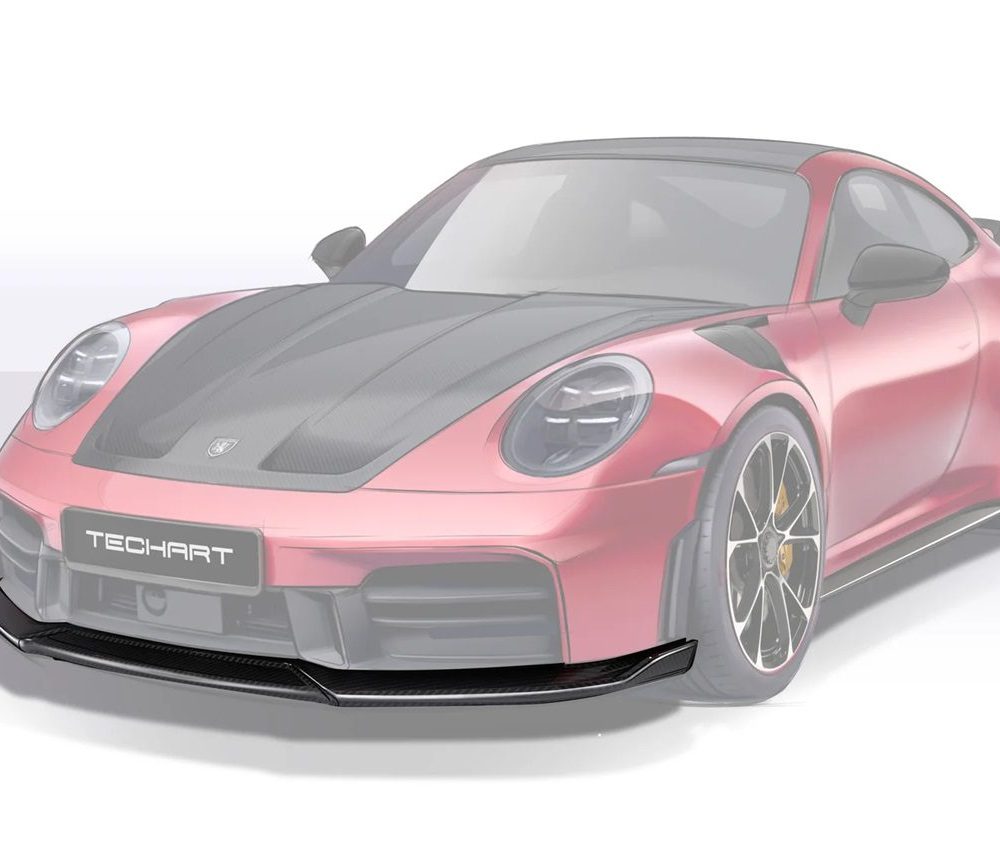 TECHART’s Carbon Front Spoiler enhances style and aerodynamic performance for the Porsche 992.2 Carrera, crafted from premium carbon fiber for precise fitment and improved downforce.