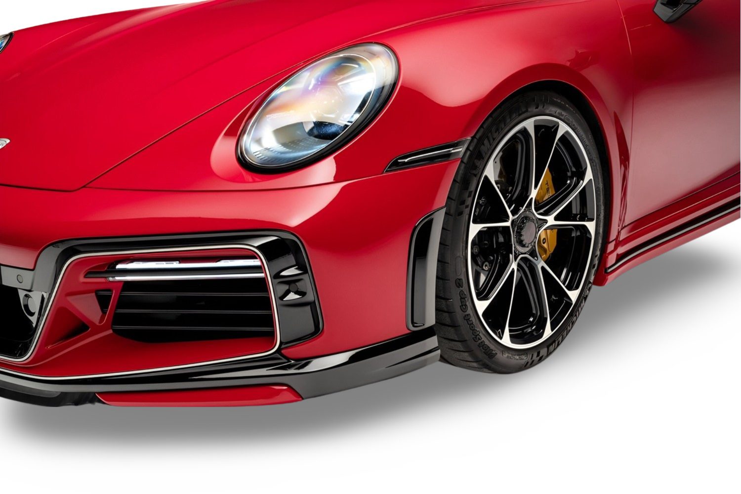 Transform the look and performance of your Porsche 992 Turbo with the TECHART Formula VI Race Wheels — a forged set of four engineered for precision, strength, and visual impact. Featuring a motorsport-derived centerlock design, these lightweight wheels enhance handling and reduce unsprung weight. Their bold split-spoke construction offers improved brake cooling, while an optional carbon fiber aeroring for the outer rim adds both aerodynamic efficiency and a distinctive race-inspired touch. Built specifically for the 992 Turbo, they deliver a seamless fit and a commanding presence on the road or track.