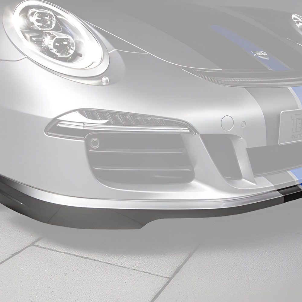The TECHART Front Spoiler I for the Porsche 991.1 GTS and Sport Design models enhances aerodynamics and appearance, reducing front axle lift and offering easy installation with customizable paint options.