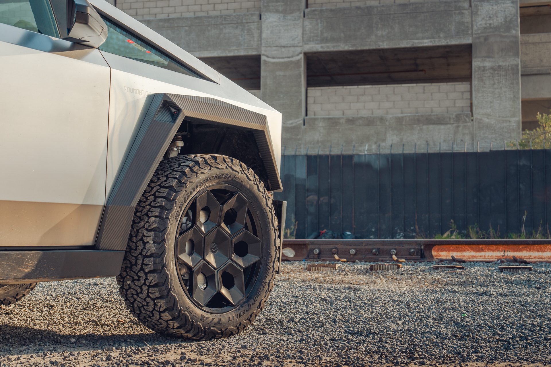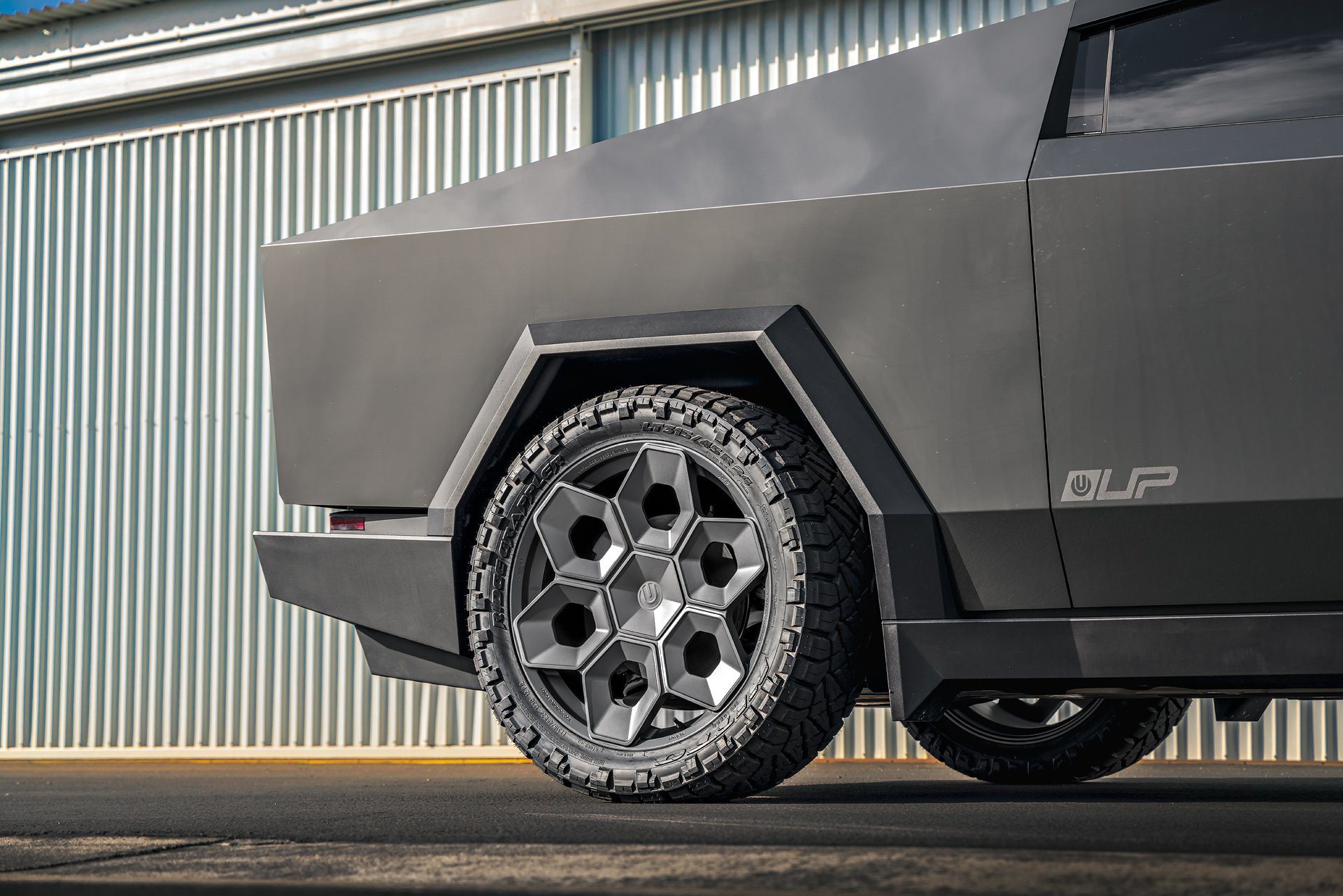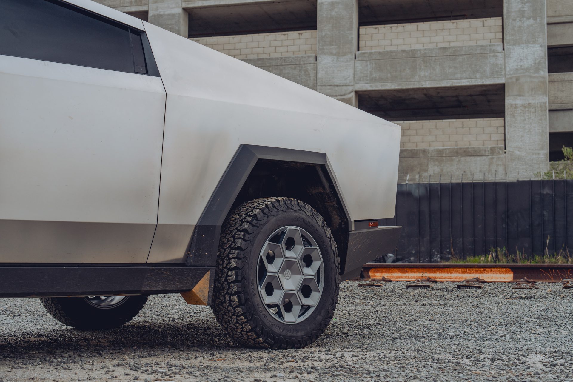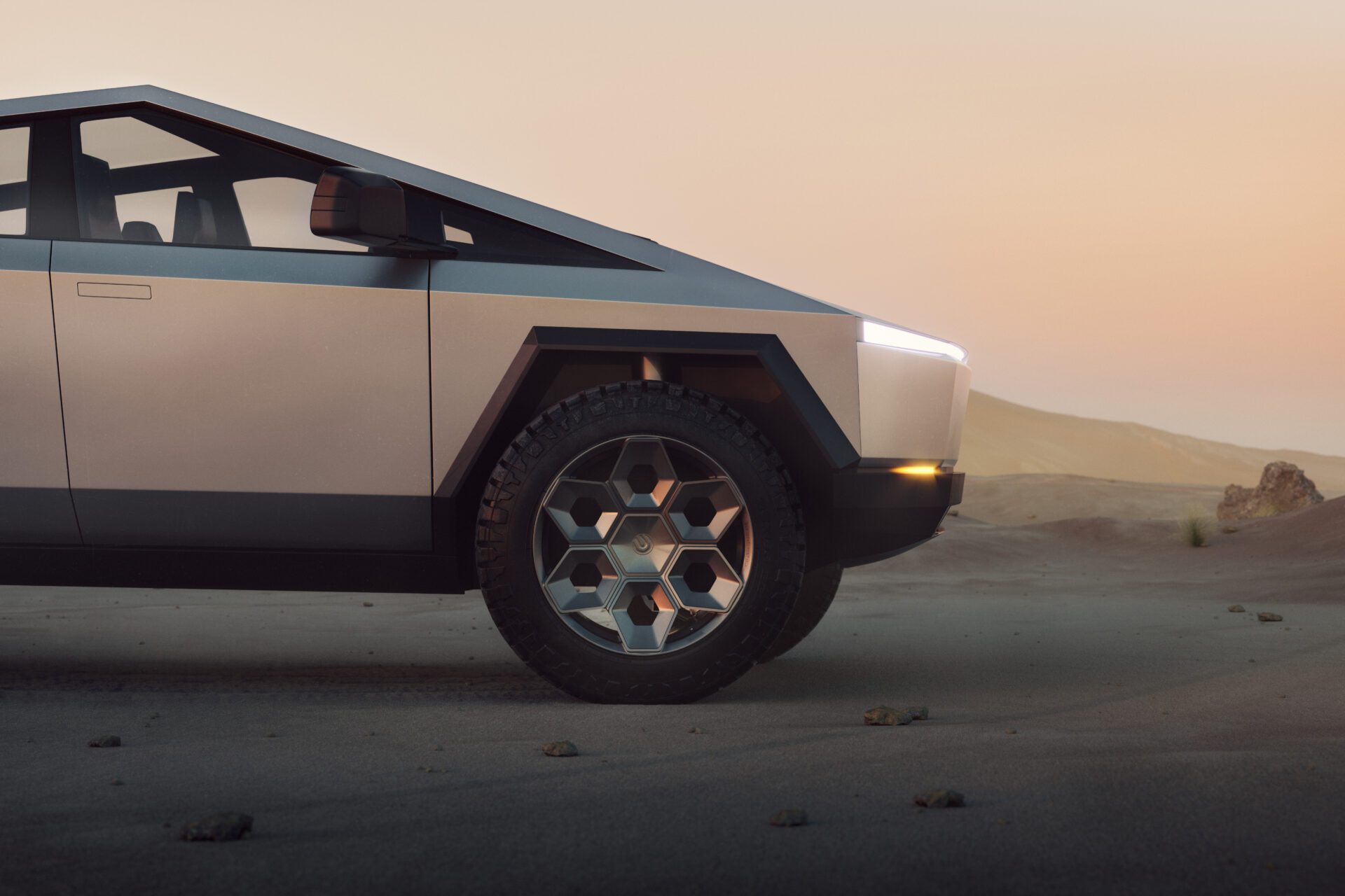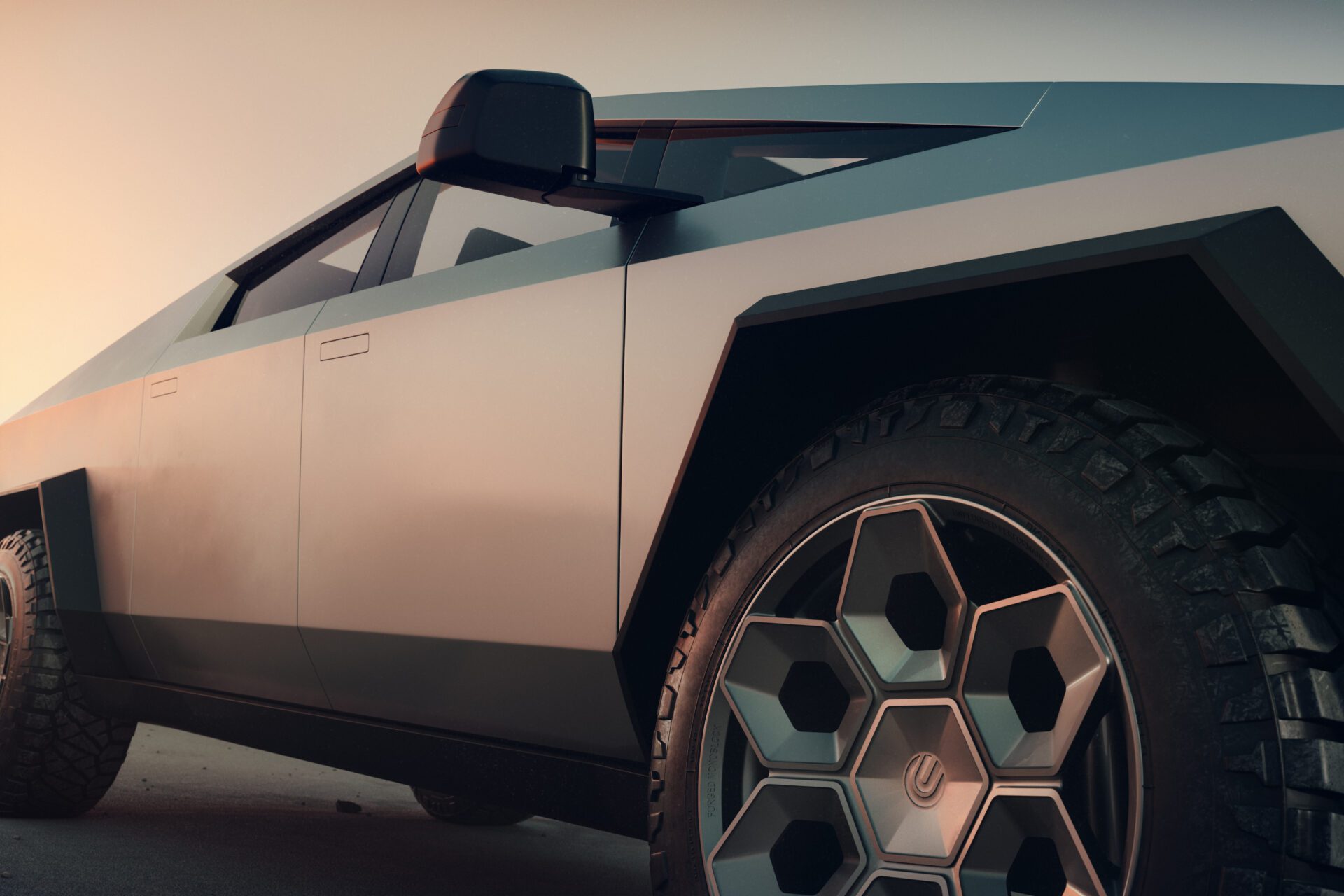 A bold new design language was introduced into the Tesla brand with the introduction of the Cybertruck. We felt it was only appropriate to develop specialized products specifically for this new era of Tesla. In our approach to this iconoclastic vehicle, we needed not only a wheel that looked right with the design visually, but a wheel that could defeat the rigors of carrying heavy loads, towing heavy loads, and will never fold in the roughest terrain on Earth, the Moon or Mars.