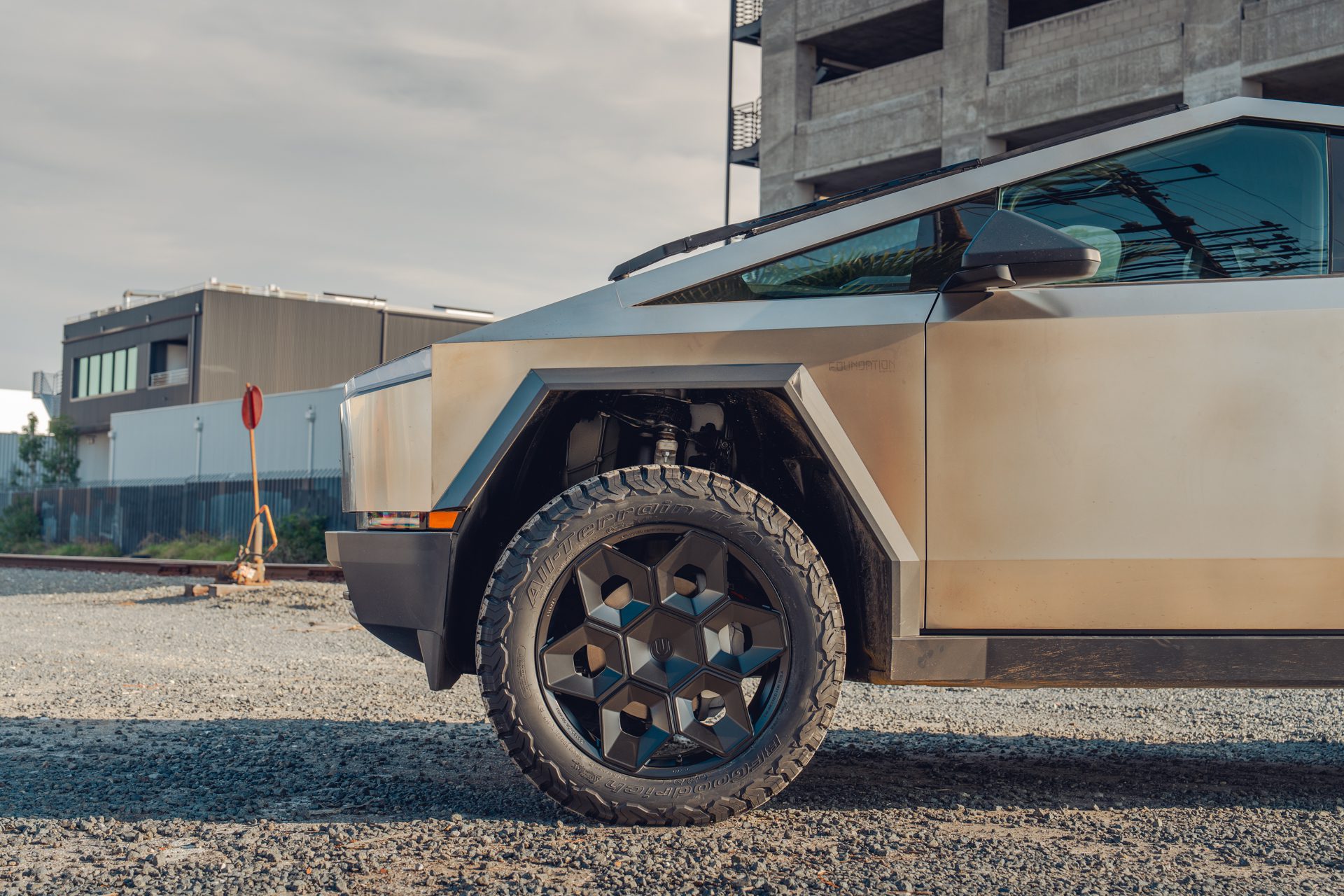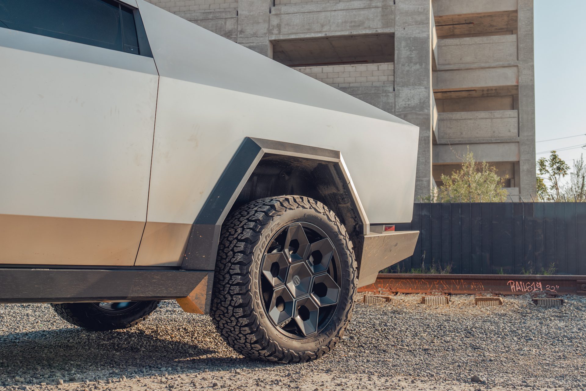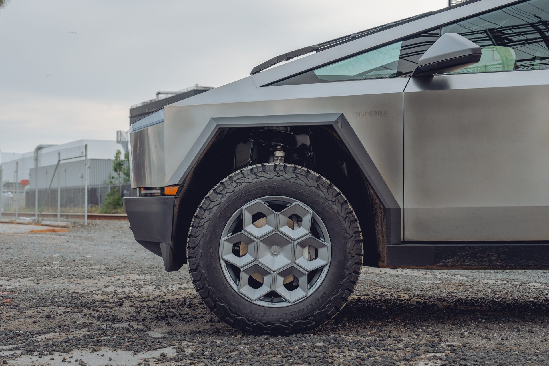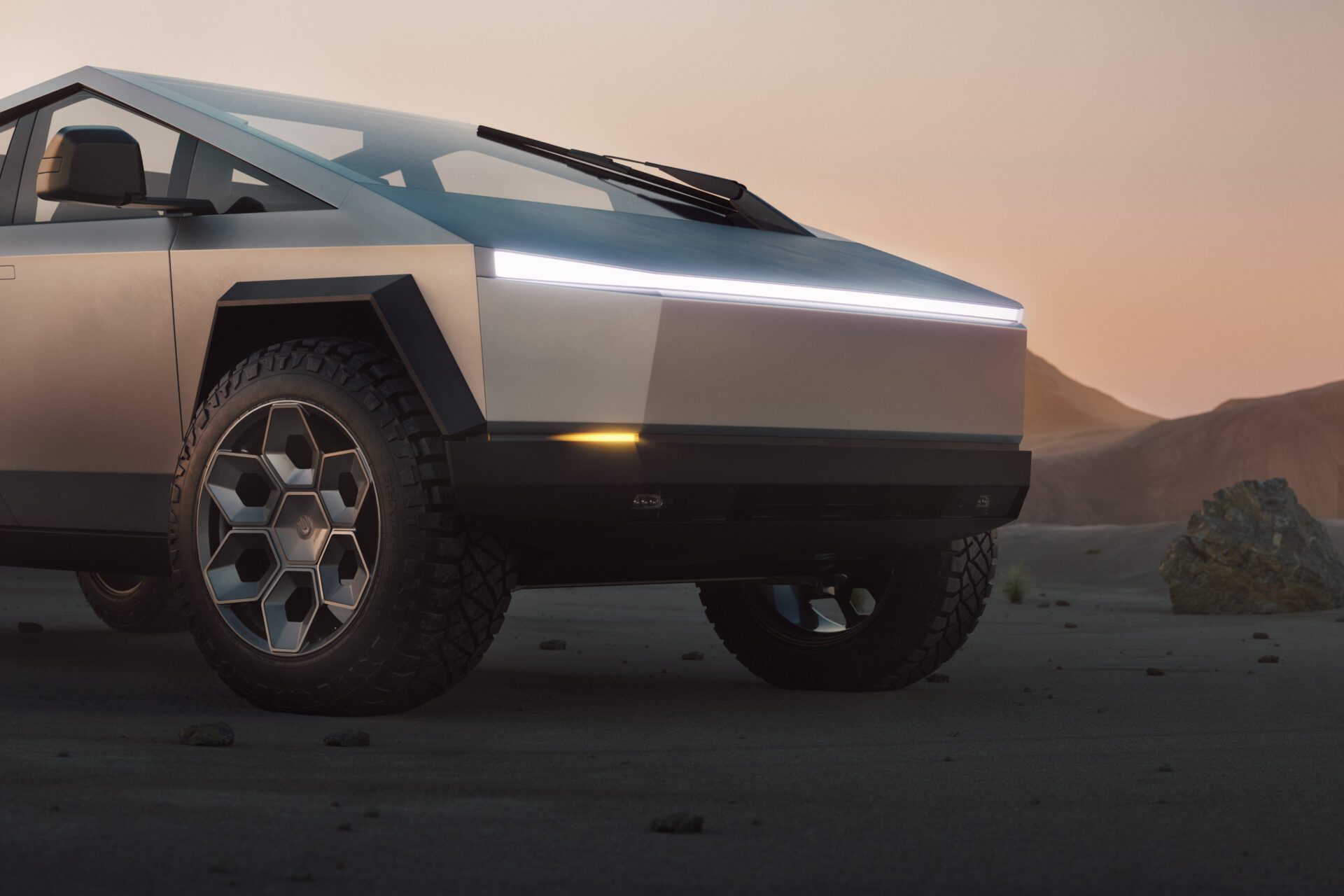 A bold new design language was introduced into the Tesla brand with the introduction of the Cybertruck. We felt it was only appropriate to develop specialized products specifically for this new era of Tesla. In our approach to this iconoclastic vehicle, we needed not only a wheel that looked right with the design visually, but a wheel that could defeat the rigors of carrying heavy loads, towing heavy loads, and will never fold in the roughest terrain on Earth, the Moon or Mars.