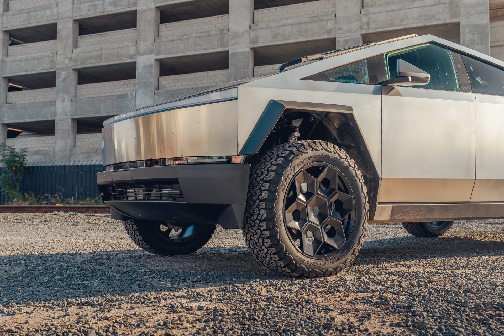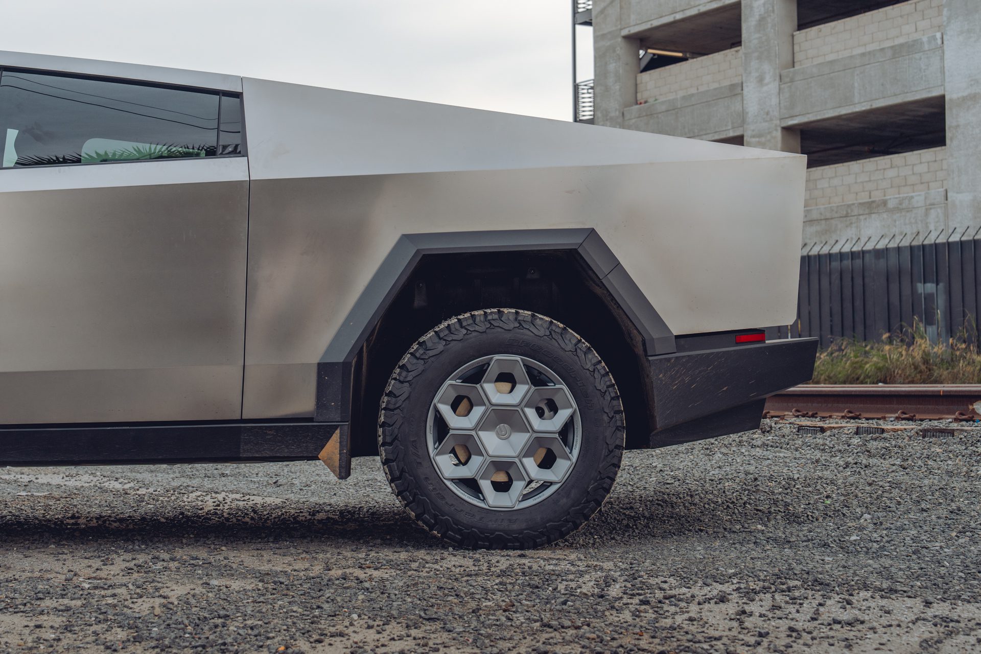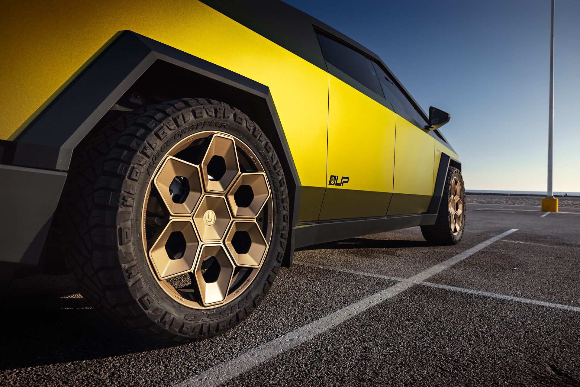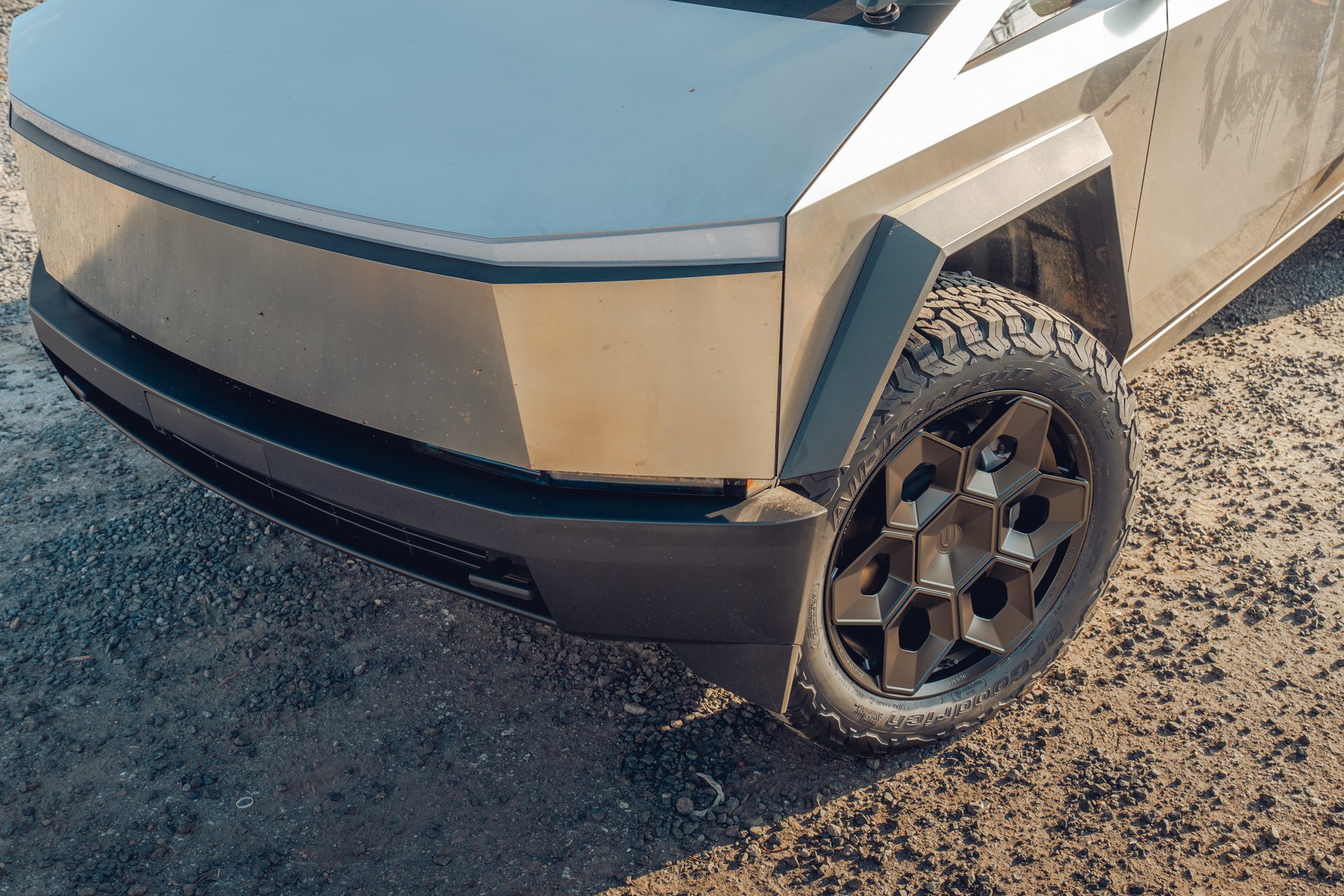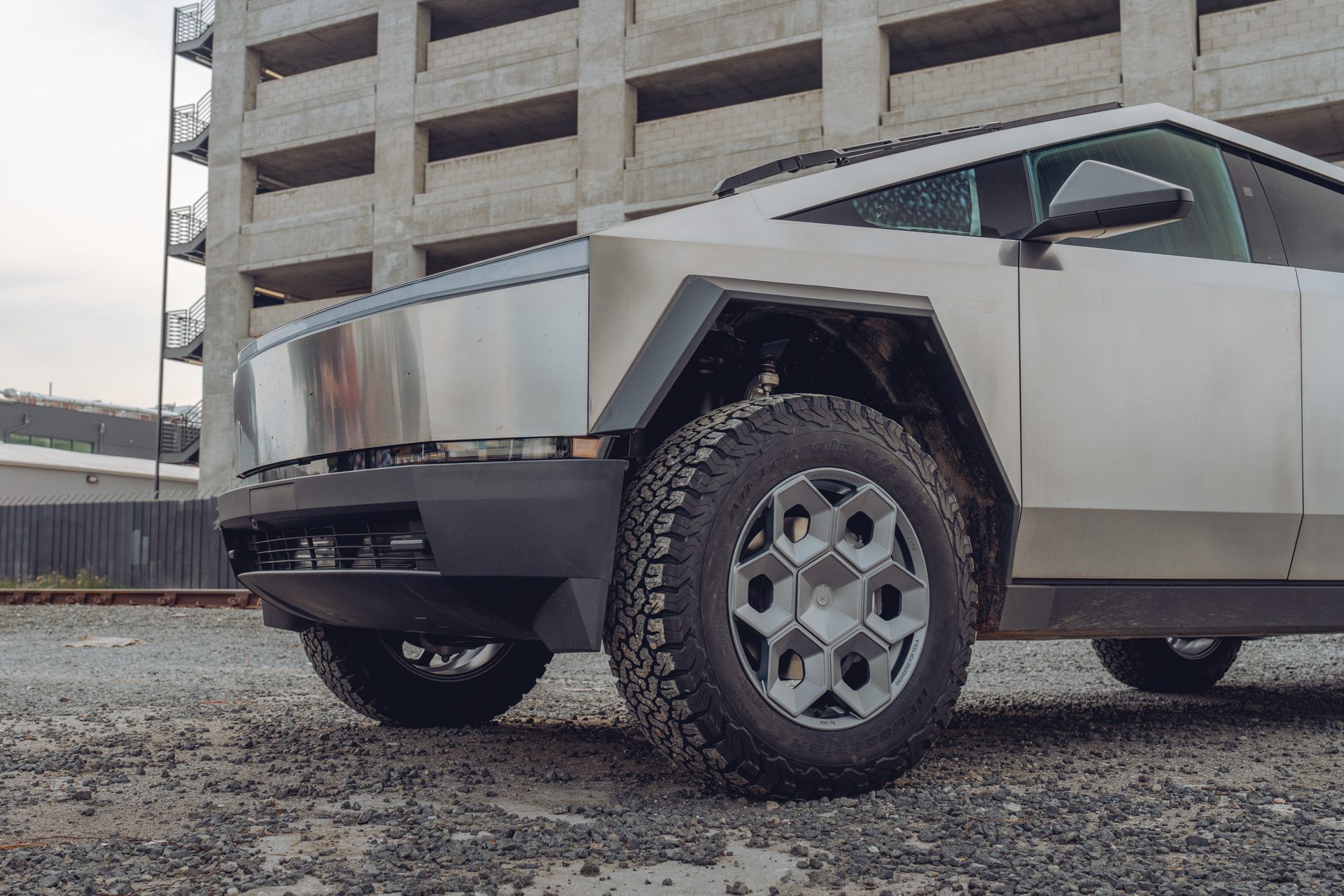 A bold new design language was introduced into the Tesla brand with the introduction of the Cybertruck. We felt it was only appropriate to develop specialized products specifically for this new era of Tesla. In our approach to this iconoclastic vehicle, we needed not only a wheel that looked right with the design visually, but a wheel that could defeat the rigors of carrying heavy loads, towing heavy loads, and will never fold in the roughest terrain on Earth, the Moon or Mars.