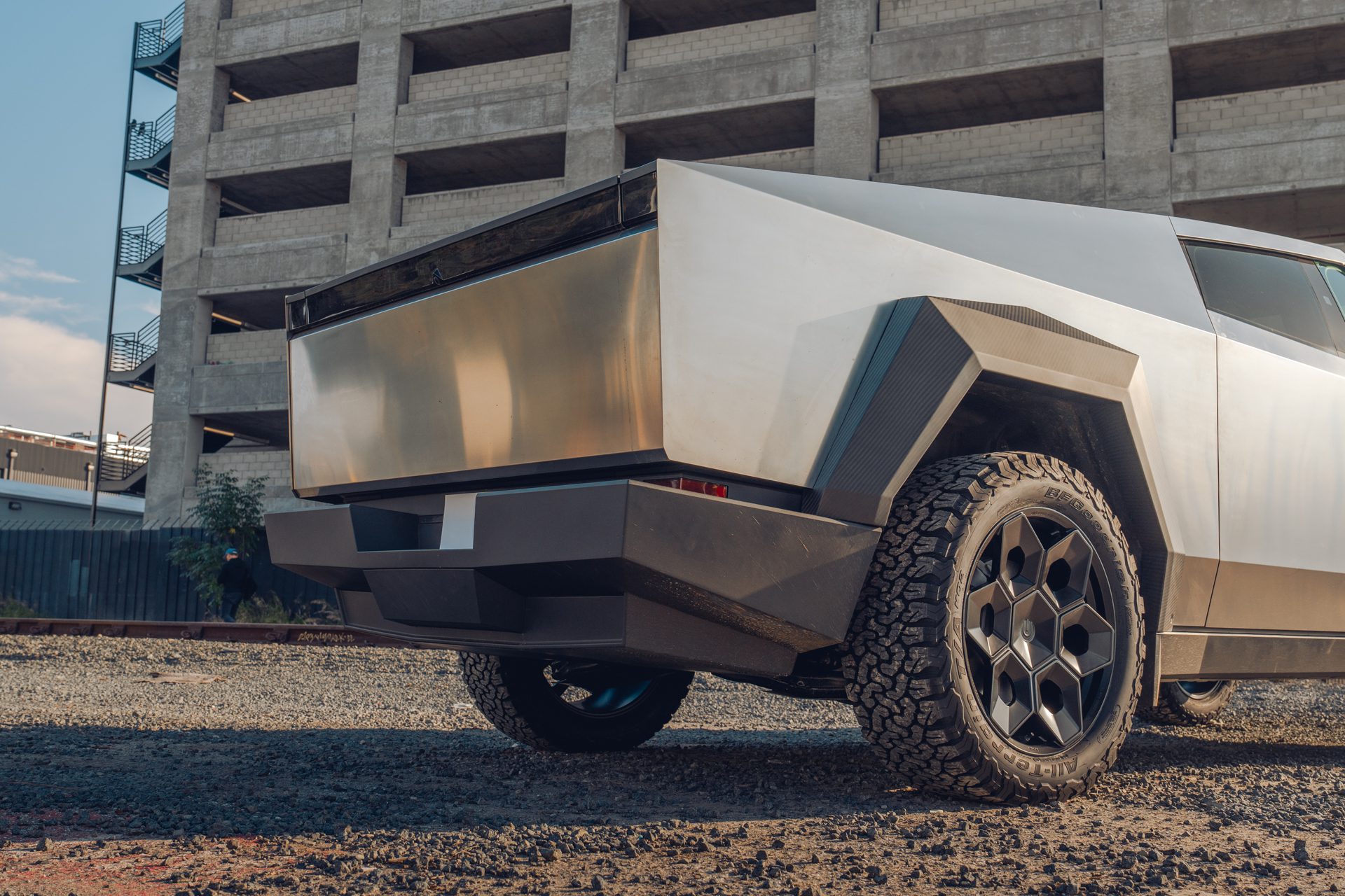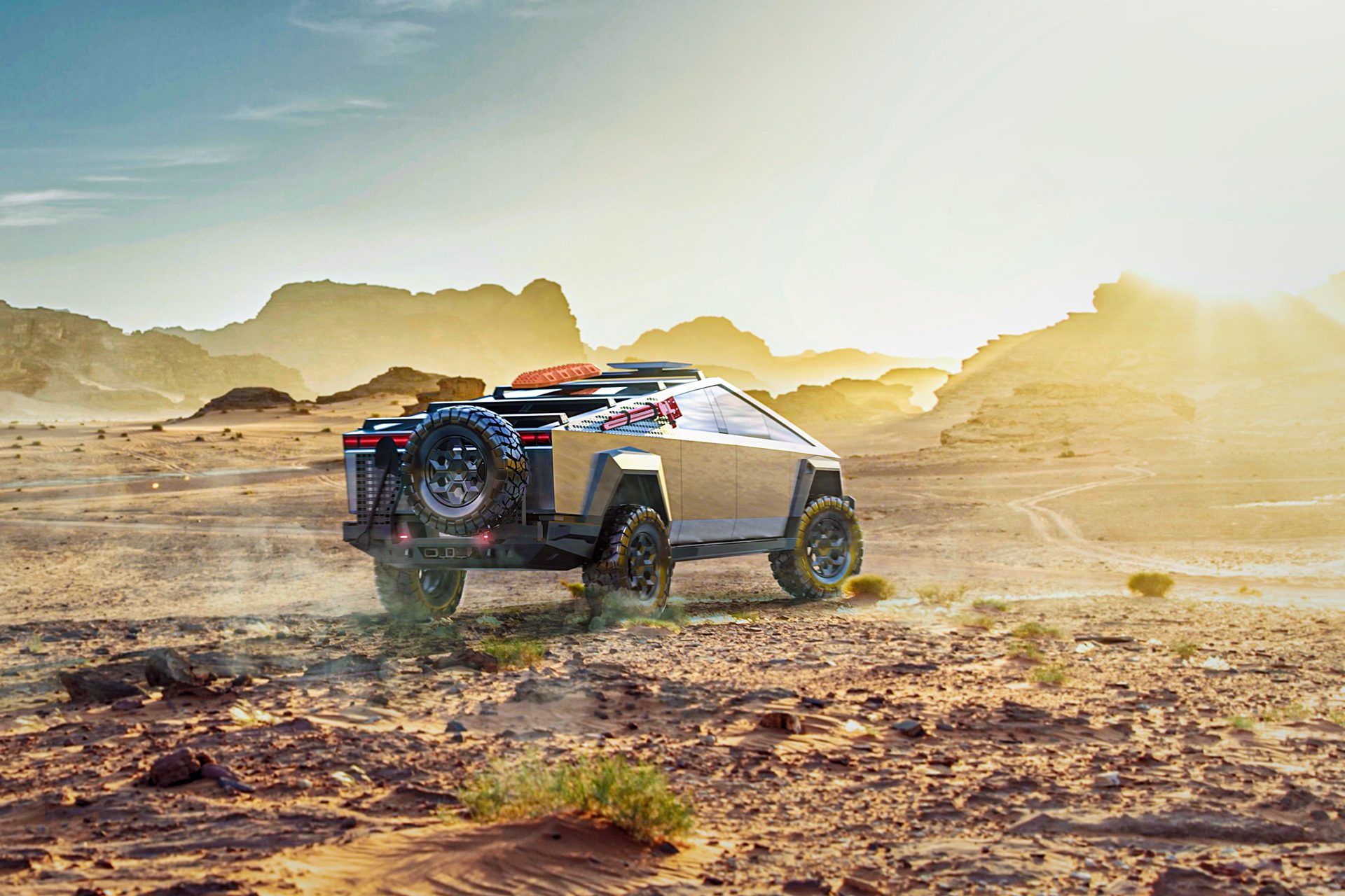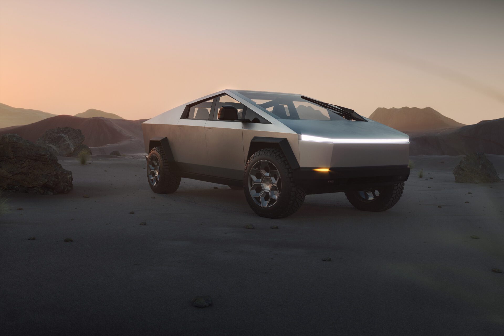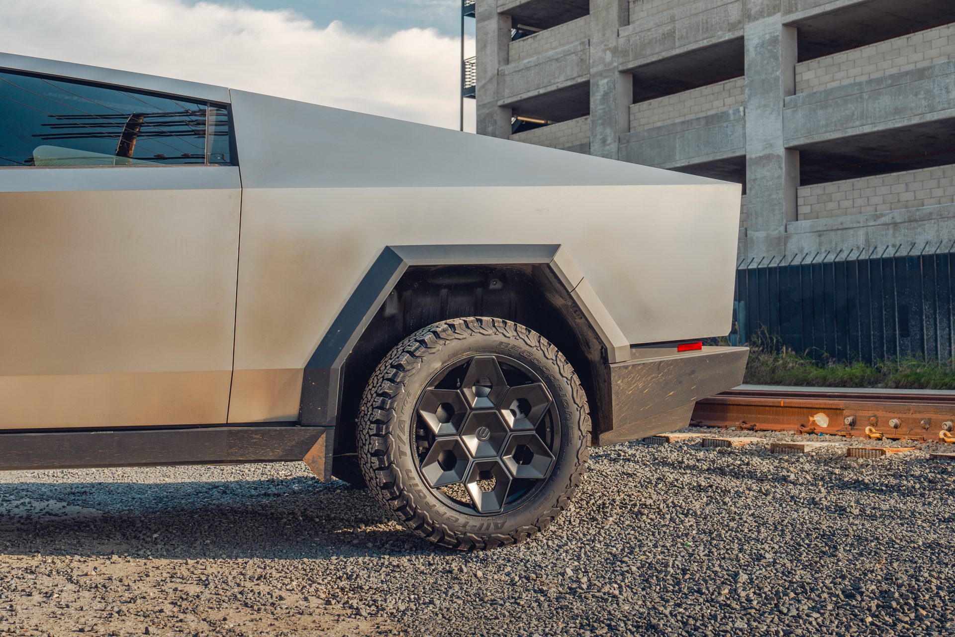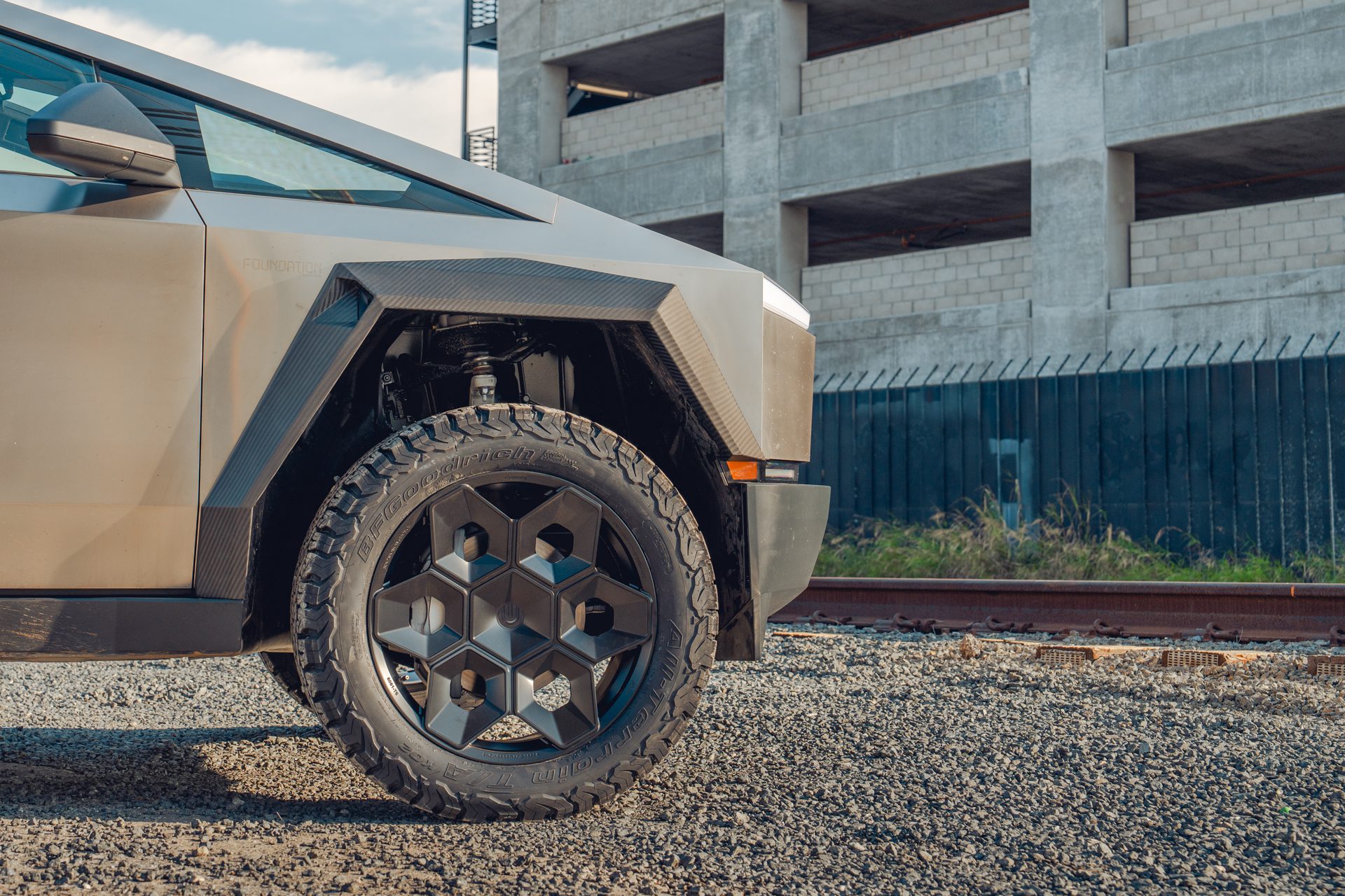 A bold new design language was introduced into the Tesla brand with the introduction of the Cybertruck. We felt it was only appropriate to develop specialized products specifically for this new era of Tesla. In our approach to this iconoclastic vehicle, we needed not only a wheel that looked right with the design visually, but a wheel that could defeat the rigors of carrying heavy loads, towing heavy loads, and will never fold in the roughest terrain on Earth, the Moon or Mars.