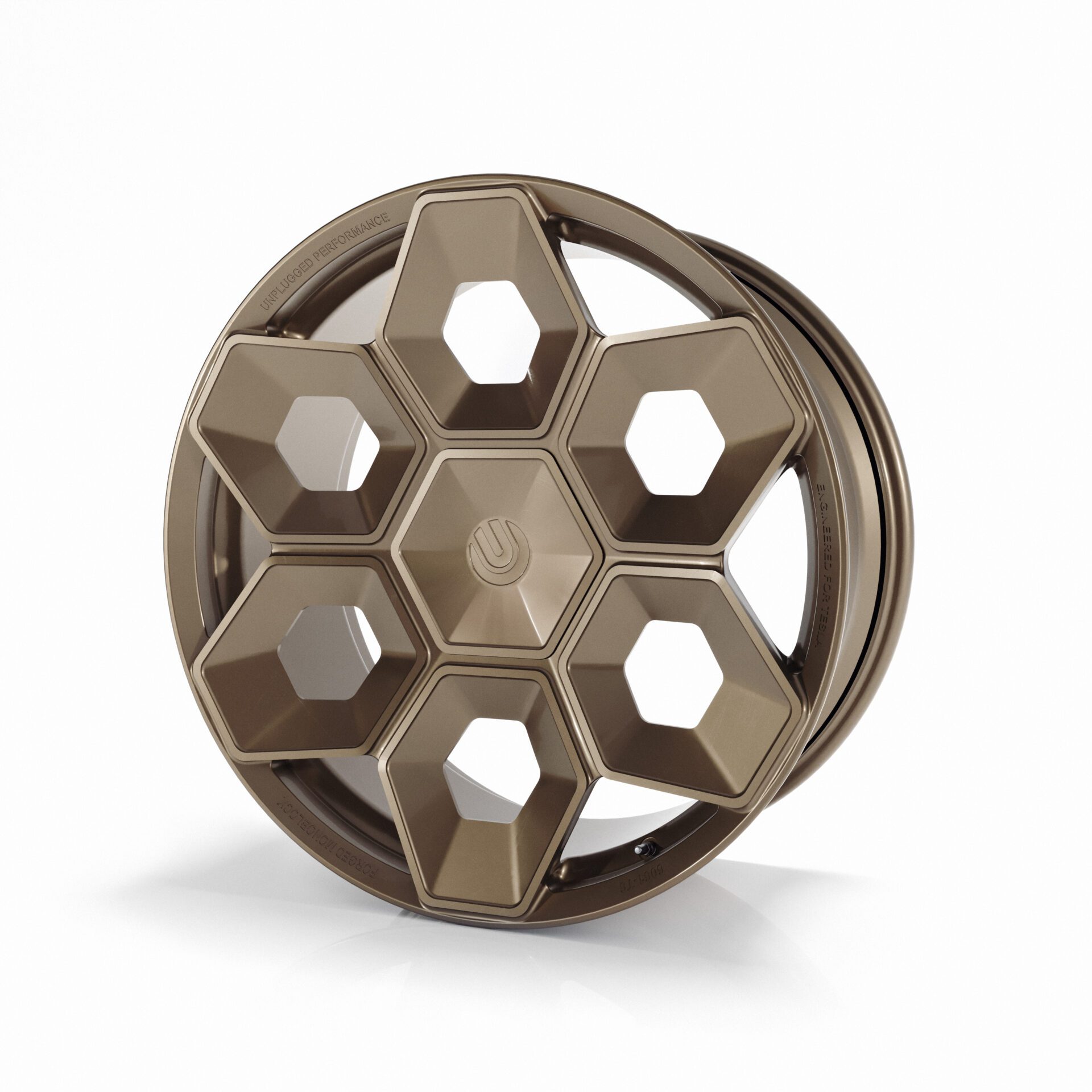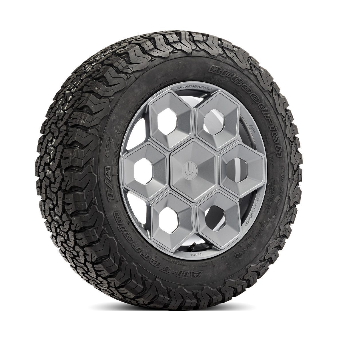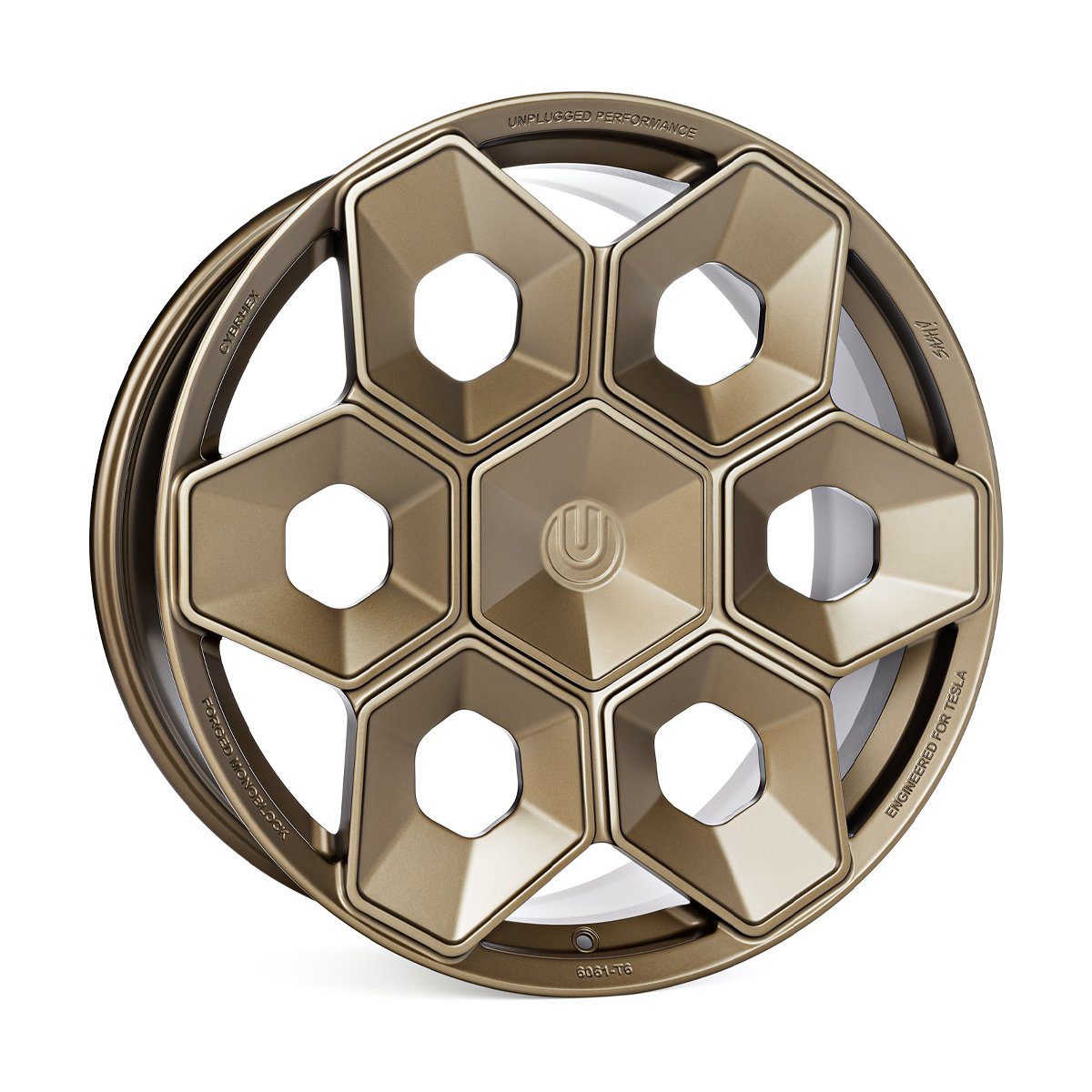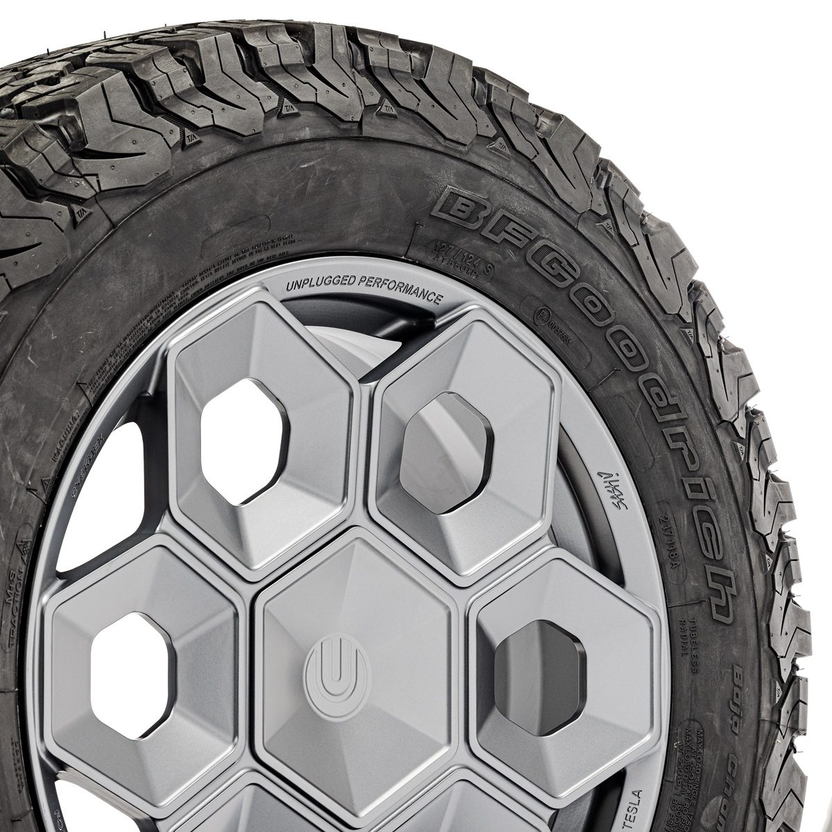 Construction: Produced in aerospace-grade 6061-T6 forged aluminum for maximum weight savings and durability, the Unplugged Performance CYBRHEX wheels are built from the ground up to perform, literally. The final result was the first wheel designed and engineered specifically for the Tesla Cybertruck with toughness and design-DNA appropriate for an adventure-filled CYBR future.