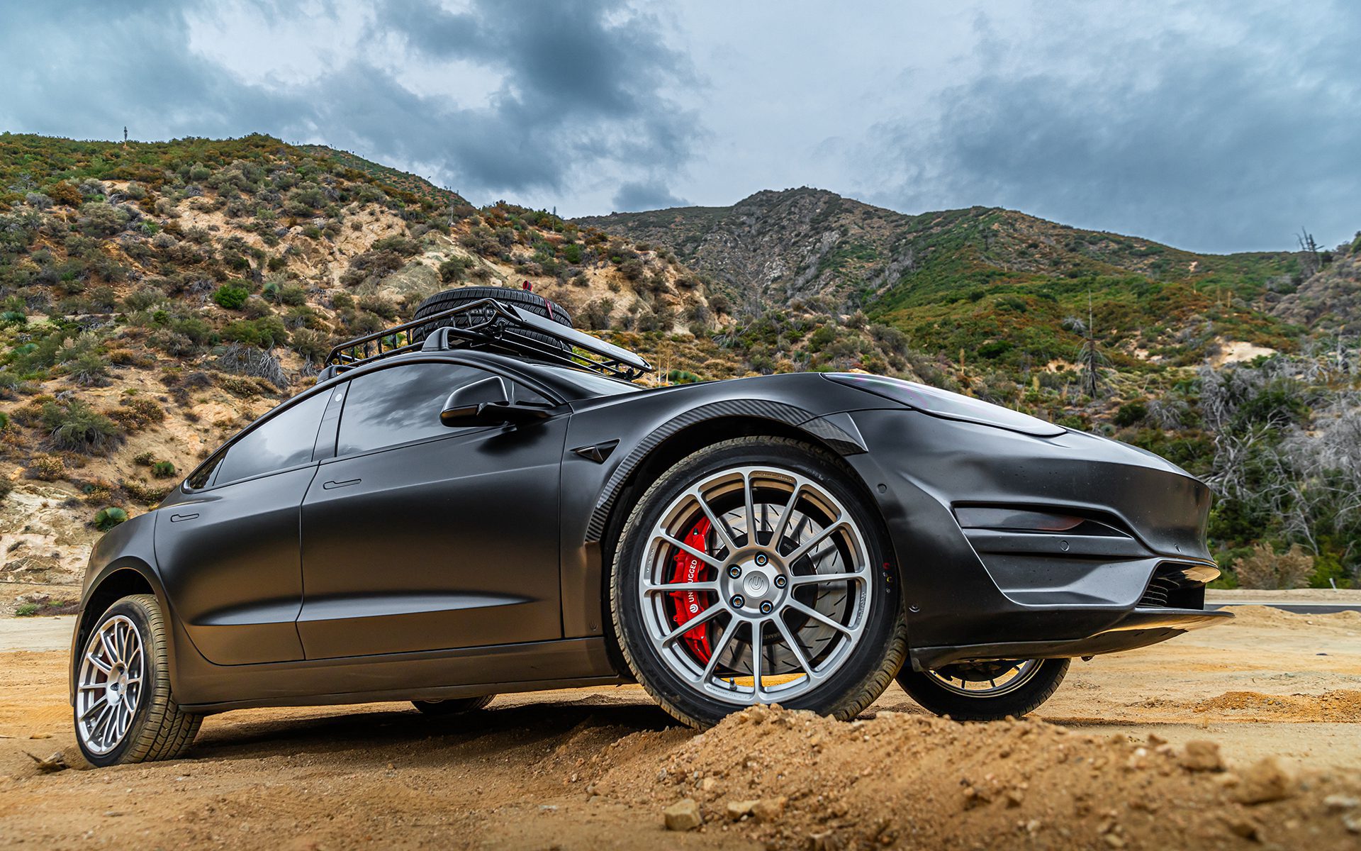 UNPLUGGED PERFORMANCE’S DIRT AND SNOW PRO COILOVER SUSPENSION LIFT KIT FOR TESLA MODEL 3 HAS BEEN METICULOUSLY ENGINEERED TO RETAIN THE SUPERB ON-ROAD DRIVING PERFORMANCE OF THE MODEL 3 CHASSIS WHILE DELIVERING UP TO 1.25 INCHES OF ADDITIONAL GROUND CLEARANCE FOR VERSATILE ALL-TERRAIN AND ALL-WEATHER EXPLORATION.