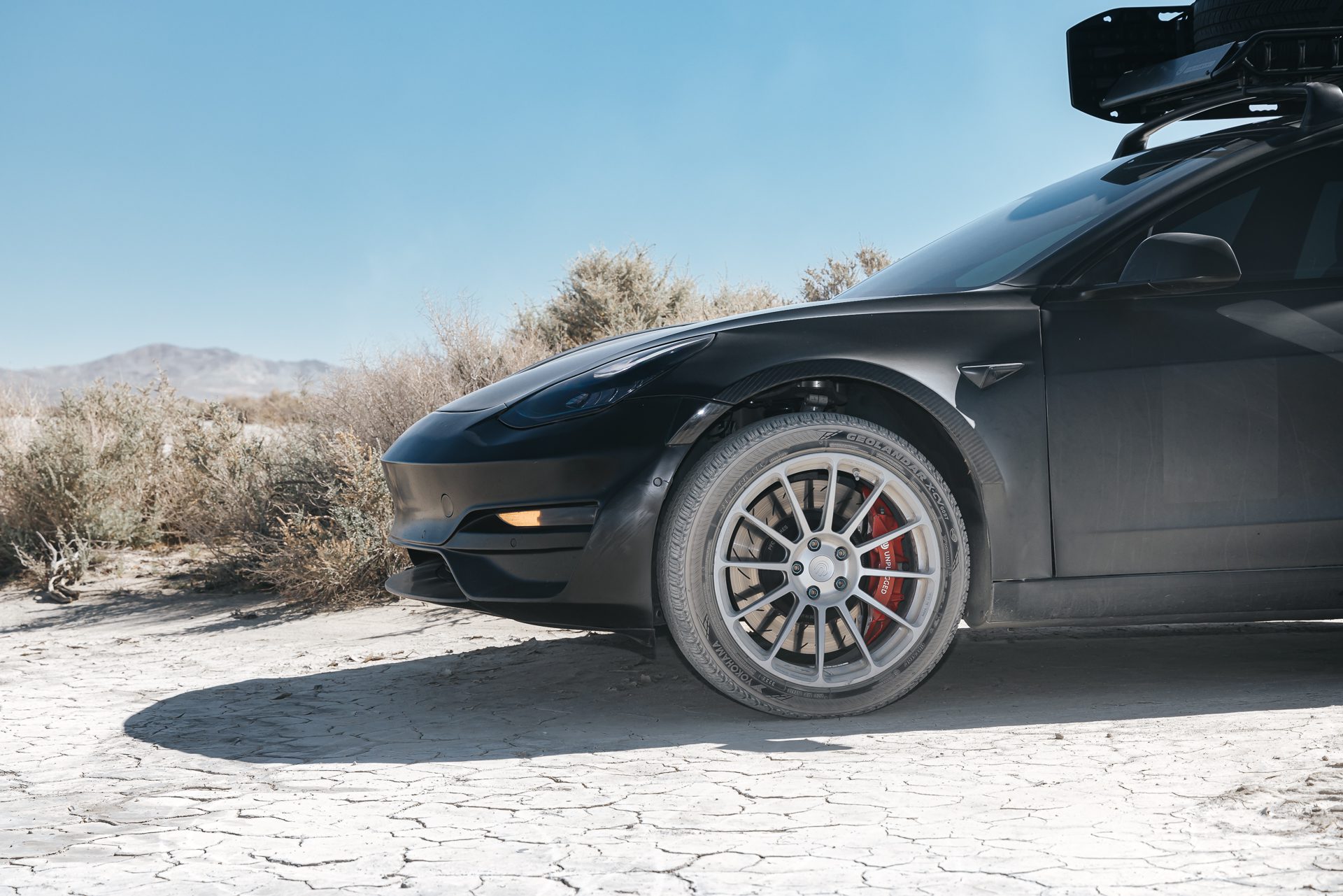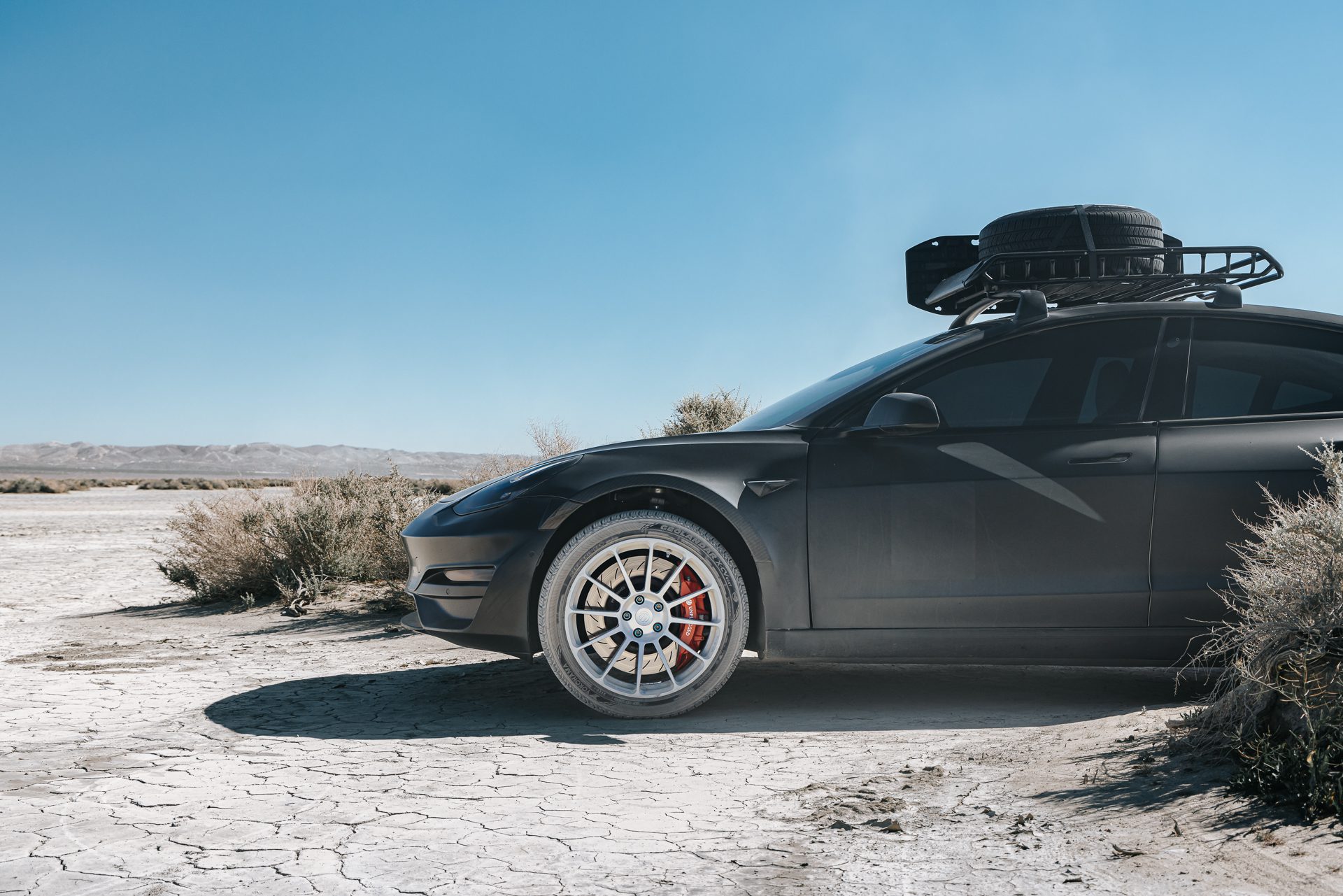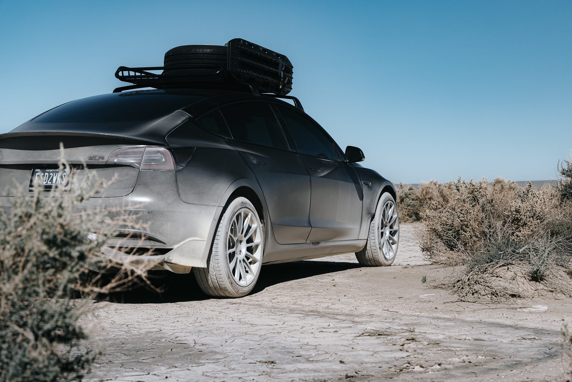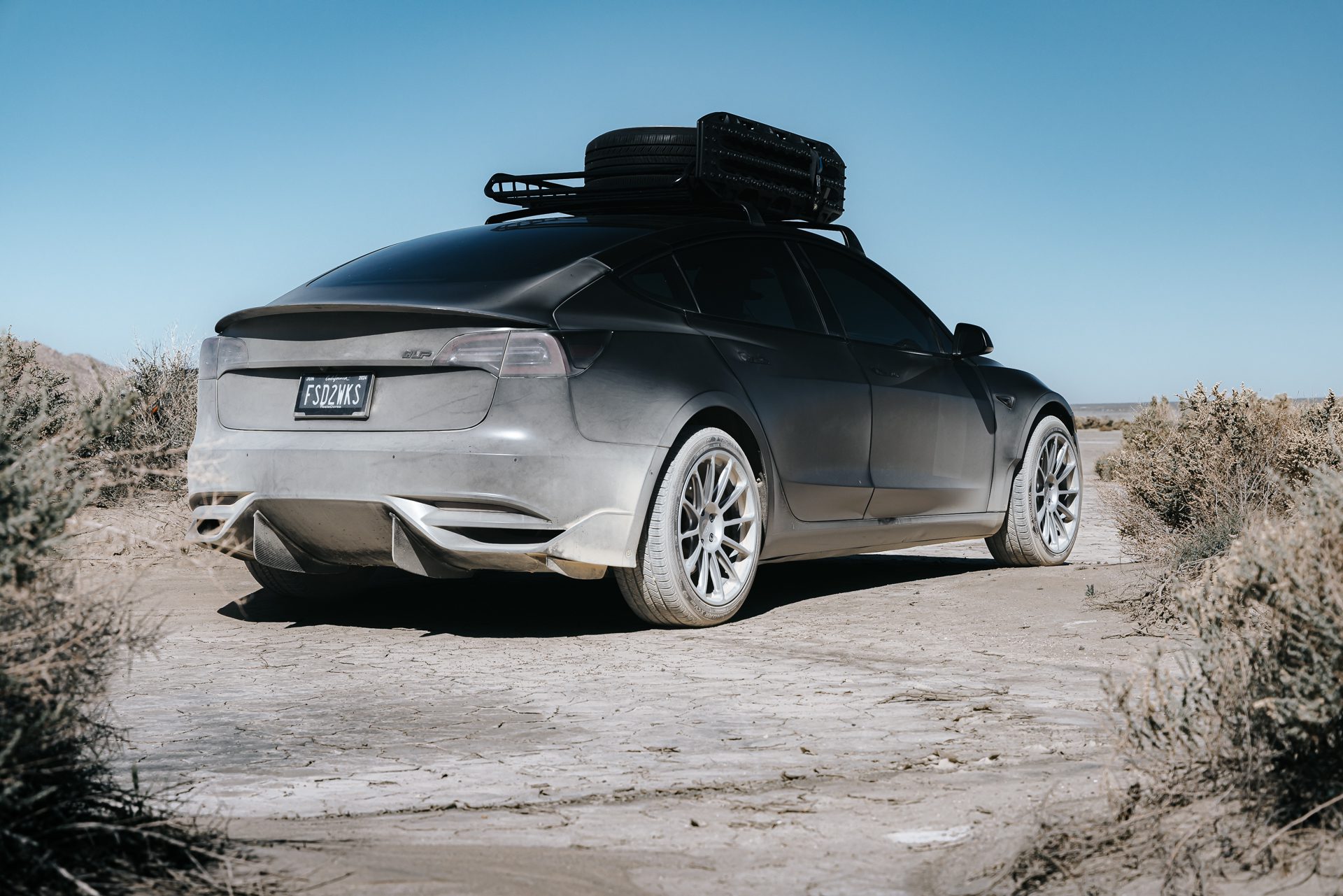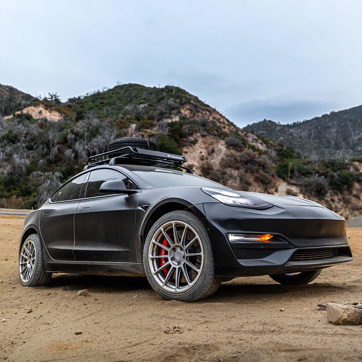 Is this a lift kit? Certainly, but it’s much more than just that. The Dirt and Snow Pro Coilover Suspension Lift Kit inherently provides an additional 1.25″ inches of clearance. Various methods exist to lift a vehicle, catering to diverse budgets. Our objective in achieving a perfect daily-driven Model 3 for all-terrain conquests is to steer clear of spacers and approach heightened ride height by amplifying functional suspension travel and articulation. Extensive testing confirms a smooth and compliant ride across all surfaces, making it an ideal companion for daily driving ventures that embrace a bit of mud!